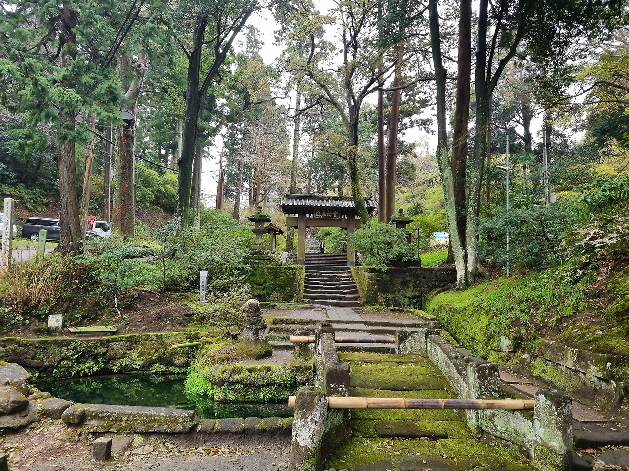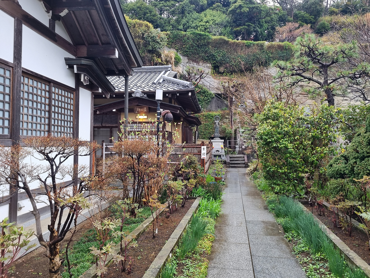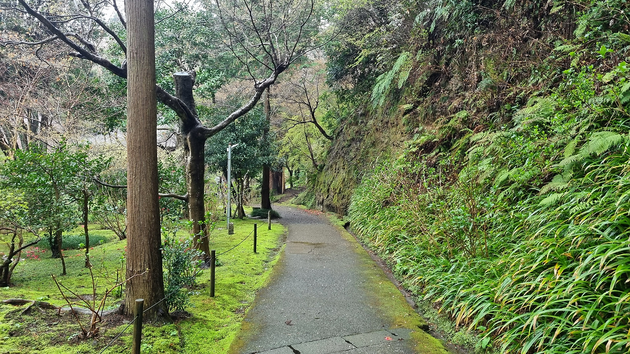 다음은 겐쵸지(建長寺)이다 이곳 엔가쿠지에서 걸어서 1킬로미터 정도이다. 한 번에 걷기엔 좀 부담이 되어 중간에 들릴만한 곳이 없는지 찾아보니 죠치지(浄智寺)라는 작은 사찰이 있다. 도로의 인도가 좁아 걷기에 불편하다. 비가 내려 집사람과 함께 우산을 쓰고 가니 더욱 그렇다. 오후 2시면 비가 그친다고 예보했는데, 일본 예보도 틀리긴 마찬가지인 것 같다.