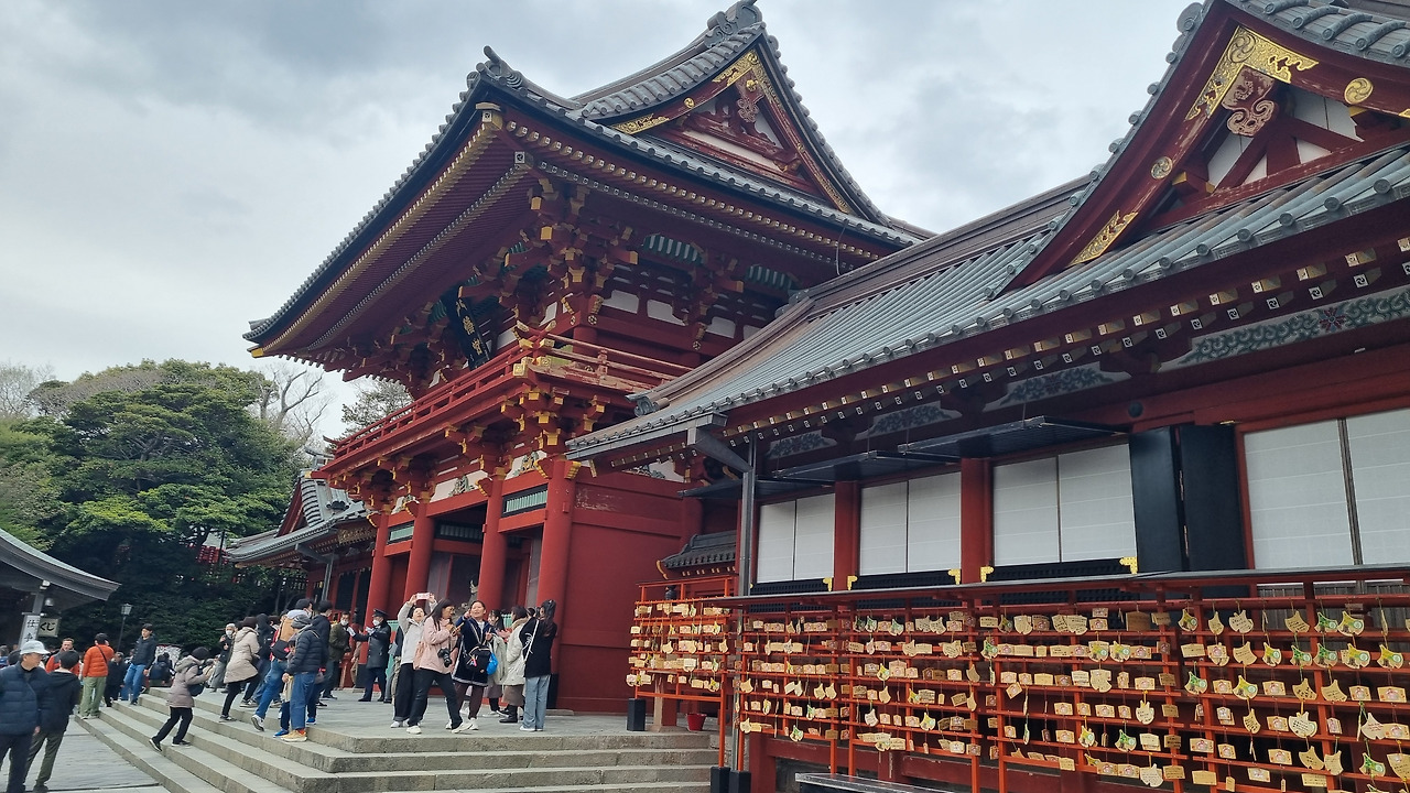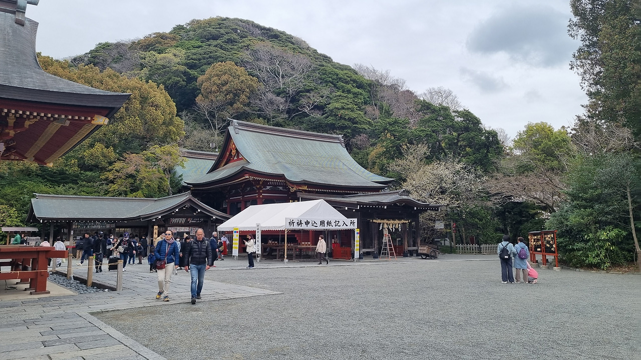 쓰루오카하치만궁에 들어가면 압도당할 만큼 그 규모가 크고 웅장하다. 정문에서 언덕 위에 있는 본건물까지 넓고 긴 길이 이어진다. 길 옆으로는 벚꽃이 화려하게 피고 있다. 한참을 걸어 들어가 언덕으로 올라가는 넓은 계단으로 올라가면 본궁을 비롯한 여러 건물들이 나온다. 건물들은 아주 규모가 커 웅장하게 보인다. 이 건물들은 대부분 19세기 초에 중건되었다고 한다. 건물 뒤쪽에는 보물을 전시한 전시관이 있는데, 입장료를 받길래 들어가지 않았다. 이곳에는 여러 점의 국보가 소장되어 있다고 한다.