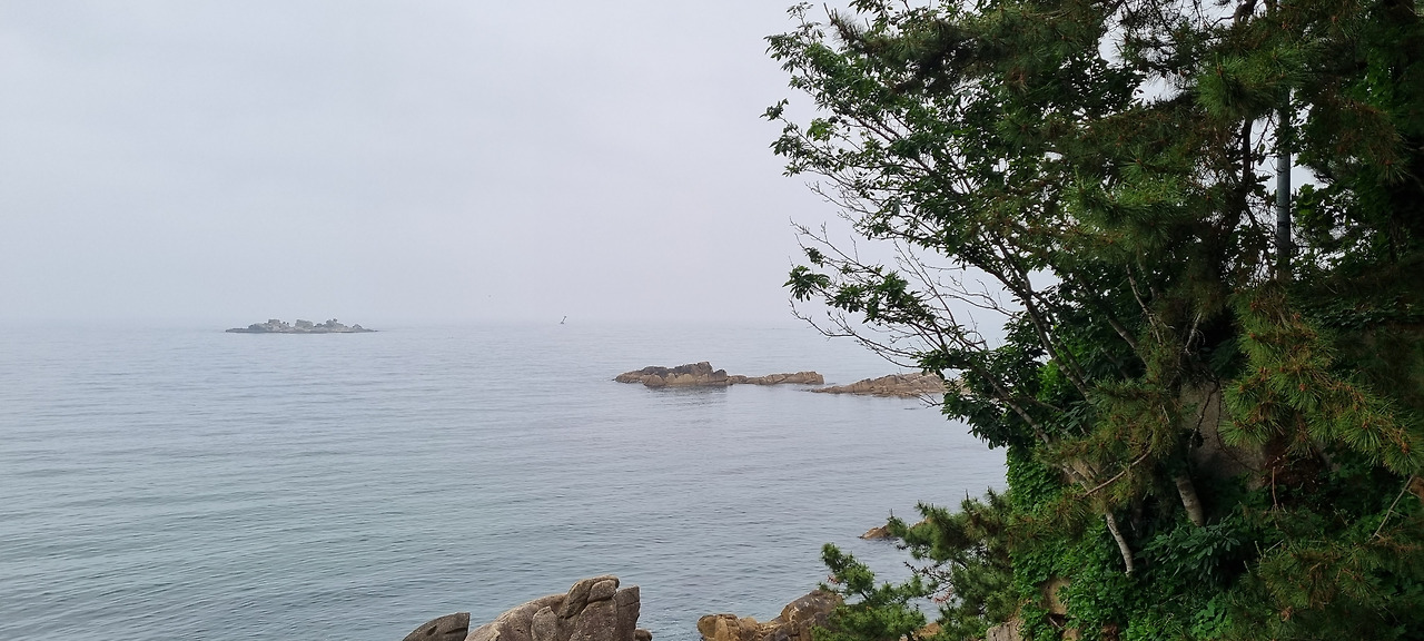 송지호 입구로 들어가면 관망타워가 나온다. 이곳에 올라가면 철새들을 쉽게 관찰할 수 있다고 하는데, 이 역시 코로나 탓으로 시설이 폐쇄되어 있다. 호수 둘레에는 산책길이 잘 정비되어 있다. 아름다운 호수이다. 호숫길을 걷고 싶었지만 화진포에서 이미 많이 걸었고, 이제 오후에 접어들어 여기서 시간을 마냥 보낼 수도 없다. 20분 정도 호수 주위를 산책하기로 하였다. 여름날이긴 하지만 날씨가 흐리고, 또 호수에는 새들도 보이지 않아 좀 쓸쓸한 느낌이 든다. 바닷가인데도 불구하고 아주 고요한 호수이다. 동해 해변의 풍경도 좋지만 이곳 송지호는 바다와는 다른 색다른 느낌을 준다. 관광객은 우리를 제외하고는 보이지 않으며, 한참 걷다 보니 강아지를 데리고 산책하는 주민을 한 사람 만날 수 있을 뿐이었다.