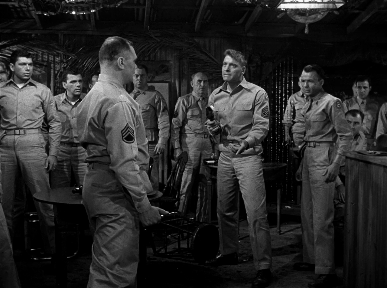 프루잇이 중대장인 홈즈에게 전속신고를 하자, 홈즈는 프루잇을 여기로 받아들인 것은 몇 달 후에 열리는 부대 복싱시합에 출전시키기 위해서라면서 복싱부에 가입하라고 한다. 프루잇이 만약 복싱대회에서 우승한다면, 홈즈 자신이 소령으로 승진할 수 있을 것이기 때문이다. 그러나 프루잇은 홈즈의 지시를 거부한다. 그는 이전 부대에서 복싱 스파링 중 실수로 친구의 눈을 멀게 하였기 때문에 이후 복싱을 그만두었다. 홈즈는 프루잇에게 복싱을 하라고 강력히 압박하지만, 프루잇의 마음은 확고하다.