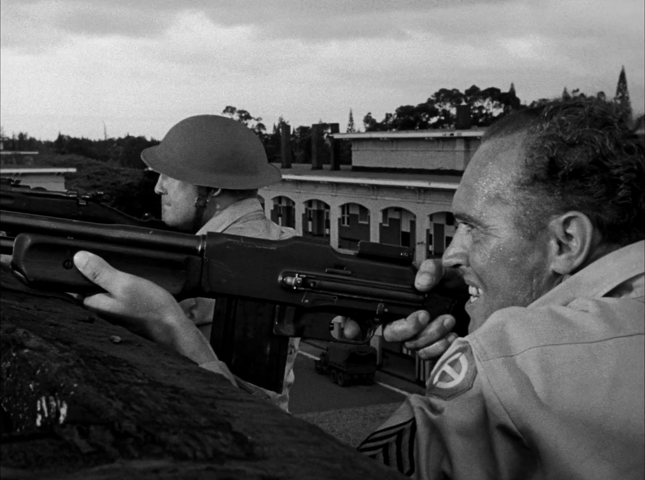 술집에서 마지오는 성질이 나쁜 하사관 팻슨과 시비가 붙는다. 이것을 시작으로 이후에도 마지오는 팻슨과 몇 번에 걸쳐 시비가 붙는다. 펫슨은 체구가 왜소한 마지오에게 폭력을 행사하지만, 마지오는 그때마다 조금도 굴하지 않고 반항한다. 젯슨은 영창의 간수로 근무하고 있다. 그는 언젠가 마지오가 영창에 들어오면 가만두지 않겠다고 벼르고 있다.