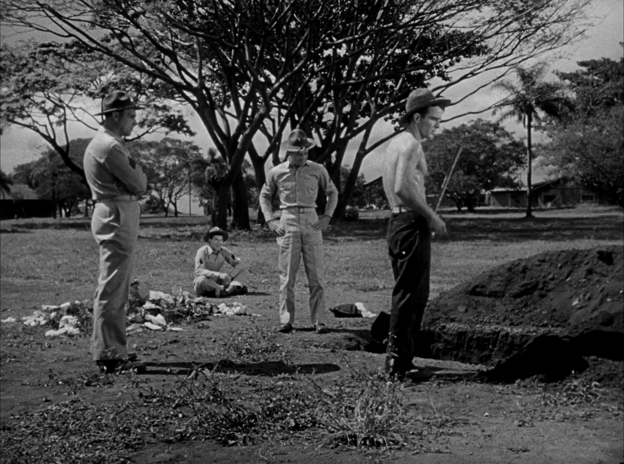 중대장 홈즈는 아무리 프루잇을 설득해도 그가 마음을 돌리지 않자 괴롭히기 시작된다. 중대 하사관들에게 프루잇을 괴롭혀 반드시 복싱부에 가입시키도록 하라고 명령한다. 다만 유능한 하사관으로서 홈즈를 보좌하고 있는 워든 중사(버트 랭커스터 분)만은 무심한 듯 그를 지켜보고 있다. 홈즈는 프루잇에게 허드레 일을 하도록 명령한다. 그리고 조금만 눈밖에 나면 가혹한 처벌을 가한다. 그렇지만 아무리 가혹한 괴로움이 가해져도 프루잇은 이를 묵묵히 견딘다.