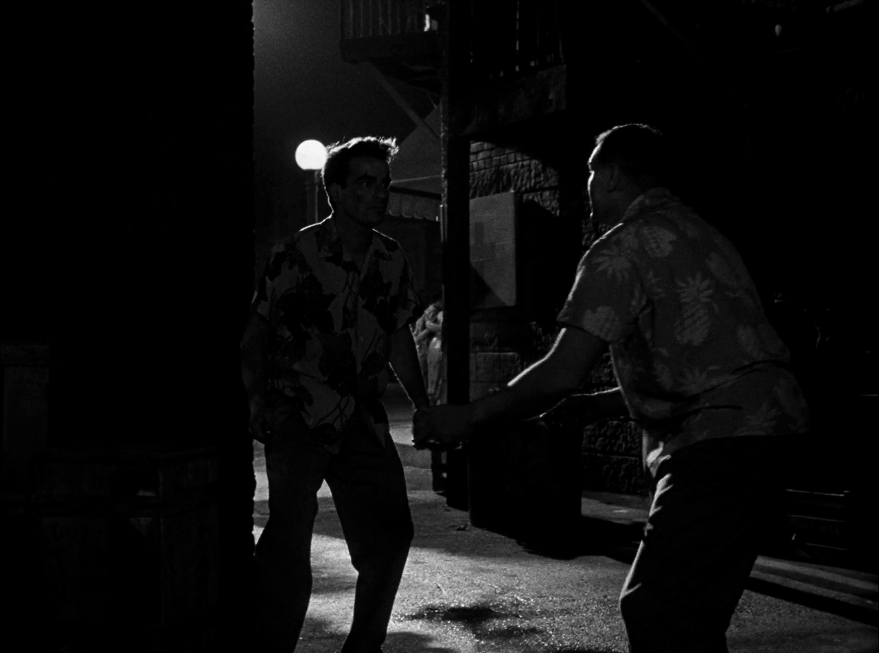 프루잇에게 친한 친구가 생겼다. 이탈리아 출신의 동료 병사 마지오(프랭크 시나트라 분)는 항상 프루잇에게 웃는 얼굴로 대해준다. 프루잇은 마지오를 따라 술집에도 가고 분위기 좋은 클럽도 소개받는다. 프루잇은 클럽에서 로레인이라는 여자를 알게 되어 점점 가까워진다. 그렇지만 프루잇은 부대에서 자신을 표적으로 하는 괴롭힘으로 인해 외출을 나오기도 쉽지 않다.