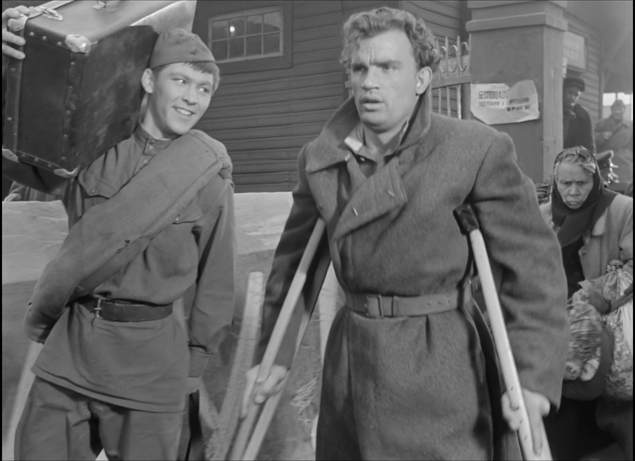 기차역에서 알료샤는 한쪽 다리를 잃은 제대 군인 바샤를 만나, 그의 여행가방을 들어준다. 바샤는 집으로 돌아가는 중이라고 하는데, 기차를 타고 가는 도중에 바샤는 갑자기 집으로 돌아가지 않겠다고 한다. 도저히 이런 모습을 아내에게 보여줄 수 없으며, 젊은 아름다운 아내의 짐이 될 수 없다는 것이다. 그러나 그는 알료샤의 설득으로 마지못해 아내가 기다리고 있는 도시의 기차역에서 내린다. 역에는 수많은 인파가 몰려 있지만, 바샤의 아내는 보이지 않는다. 사람들이 한둘씩 흩어져 텅 빈 플랫폼에서 실망한 바샤는 혼자서 떠나려 한다. 그때 저곳에서 바샤의 아내가 손을 흔들며 바샤의 이름을 부르며 달려온다. 그녀는 그대로 바샤의 품에 안긴다.