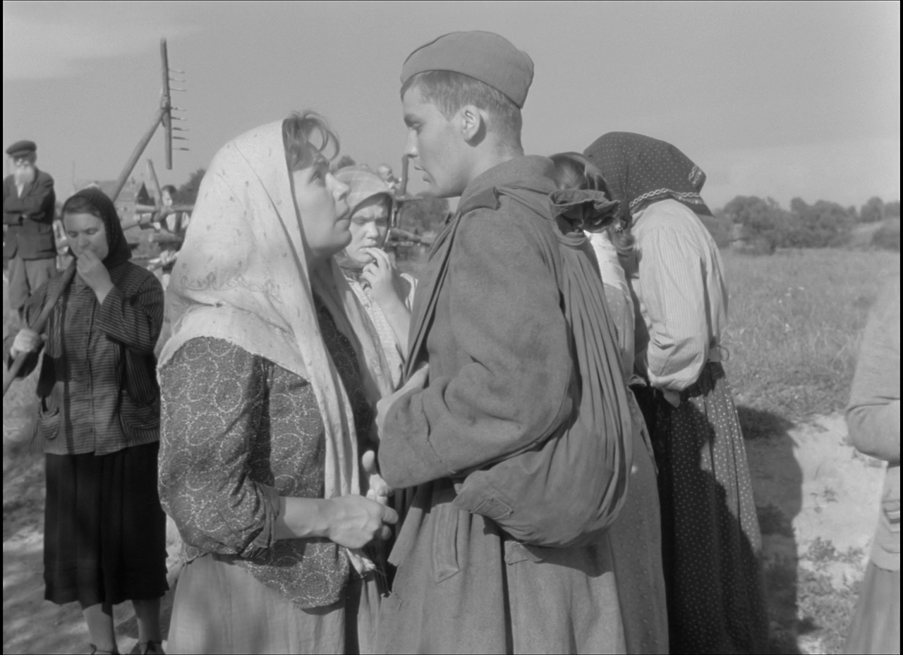 길가에서 알료샤가 트럭을 타고 오는 모습을 본 마을 사람들은 이 소식을 밭일을 하고 있는 알료샤의 어머니에게 알리러 간다. 알료샤가 집에 도착하였다. 그런데 어머니가 보이지 않는다. 옆집에 사는 소녀가 알료샤에게 어머니는 지금 밭에서 일하고 있다고 알려준다. 그러나 알료샤에게는 지금 밭으로 가서 어머니를 만날 시간이 없다. 트럭은 지금 바로 출발해야 한다. 어쩔 수 없이 알료샤는 다시 트럭에 올라 마을을 떠난다.