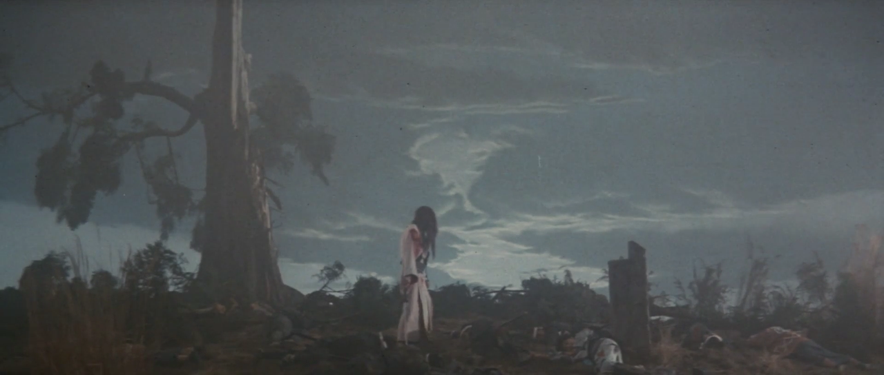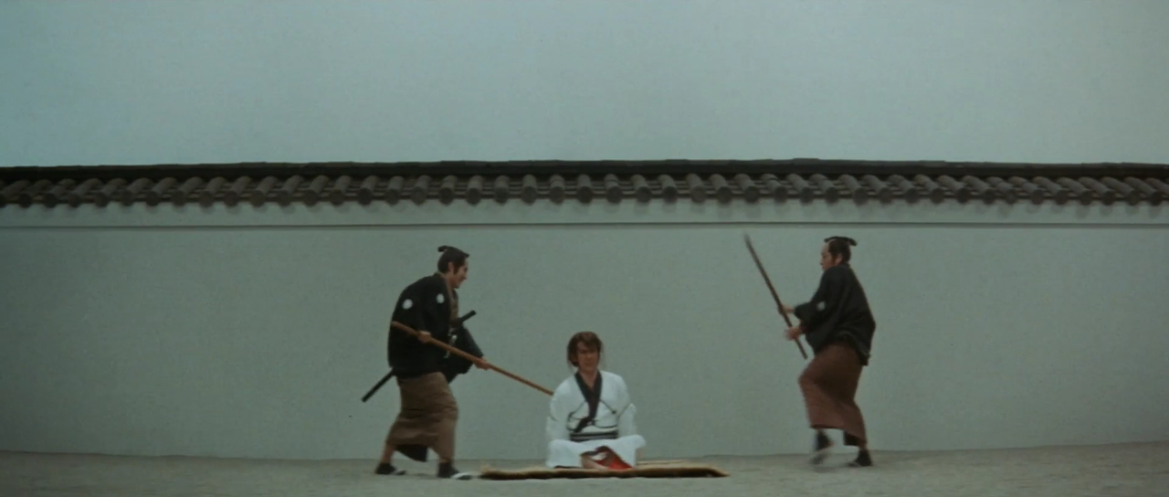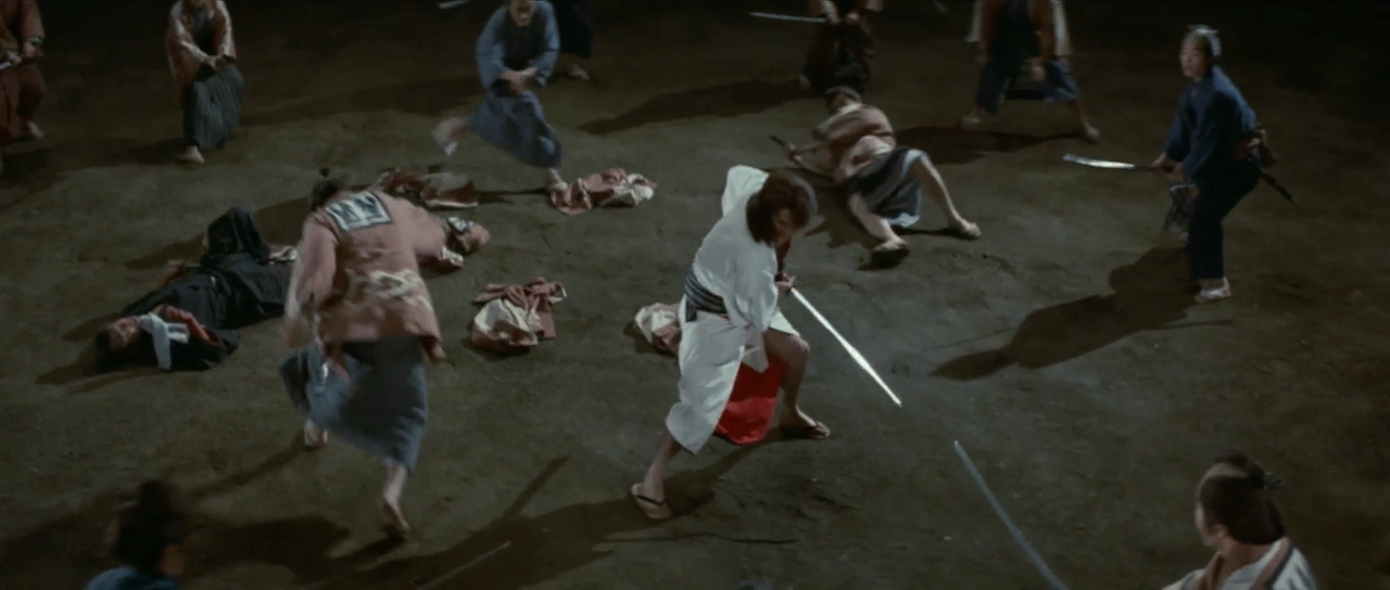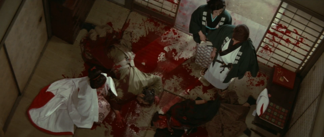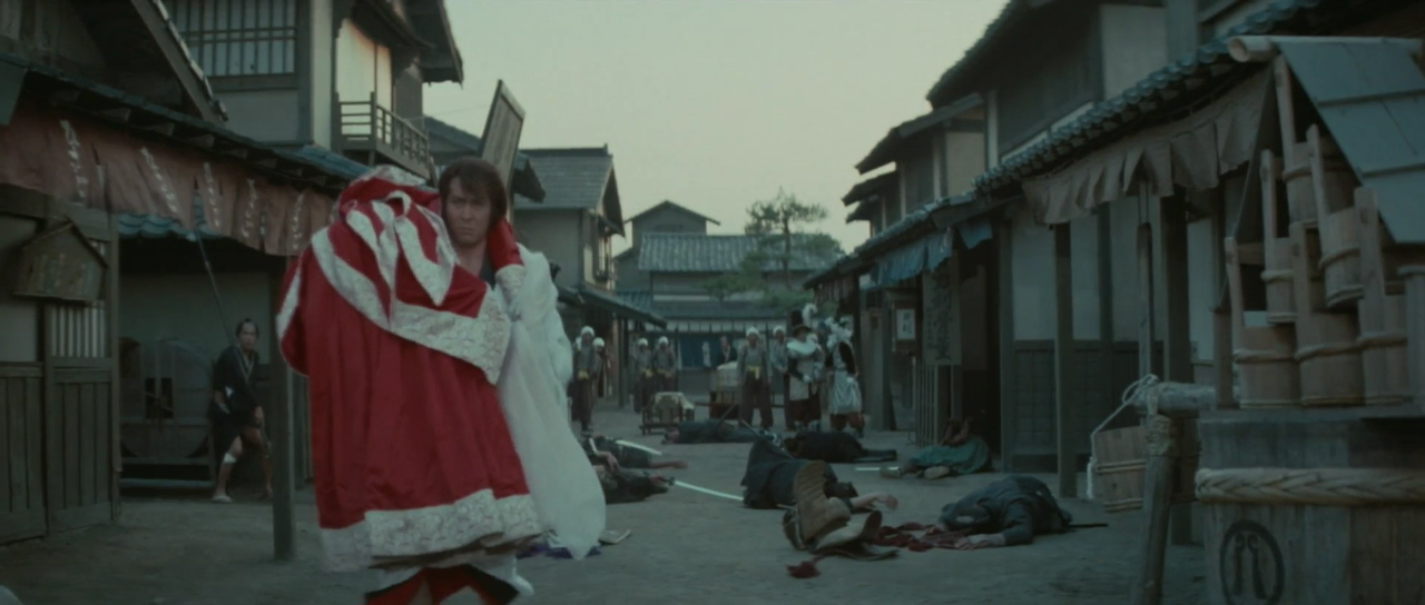 한편 갈대숲으로 도망치는 잇쇼와 몬쿠마츠를 수십 명의 관헌들이 추격하고 있다. 잇쇼는 이들을 닥치는 대로 벤다. 몬쿠마츠 역시 권총으로 이들을 쏘아 죽인다. 얼마뒤 살아 움직이는 사람은 아무도 없다. 모두가 죽은 것인가? 그때 쓰러져 있던 잇쇼가 눈을 뜨고 일어선다. 그리고는 “아직도 지옥에서 살아야 하나”라며 중얼거린다.