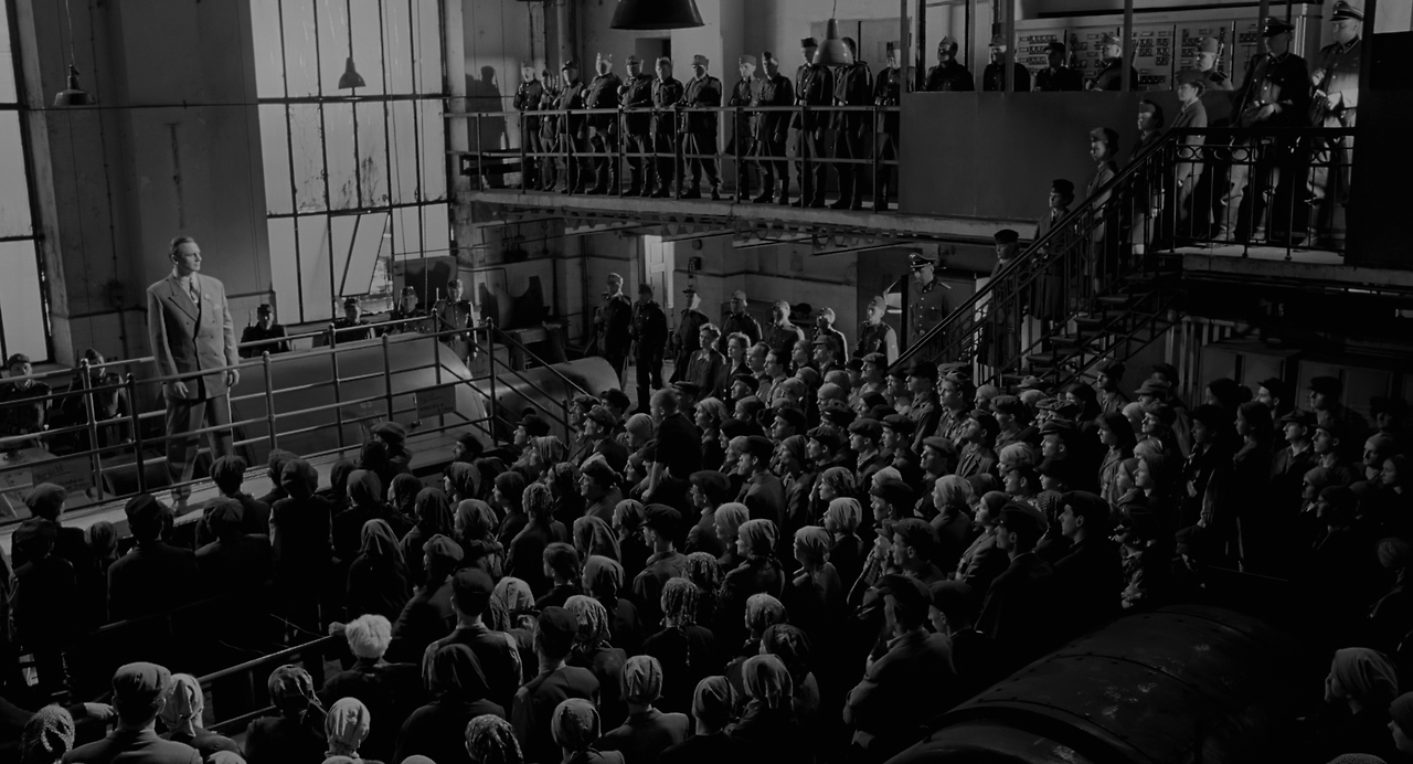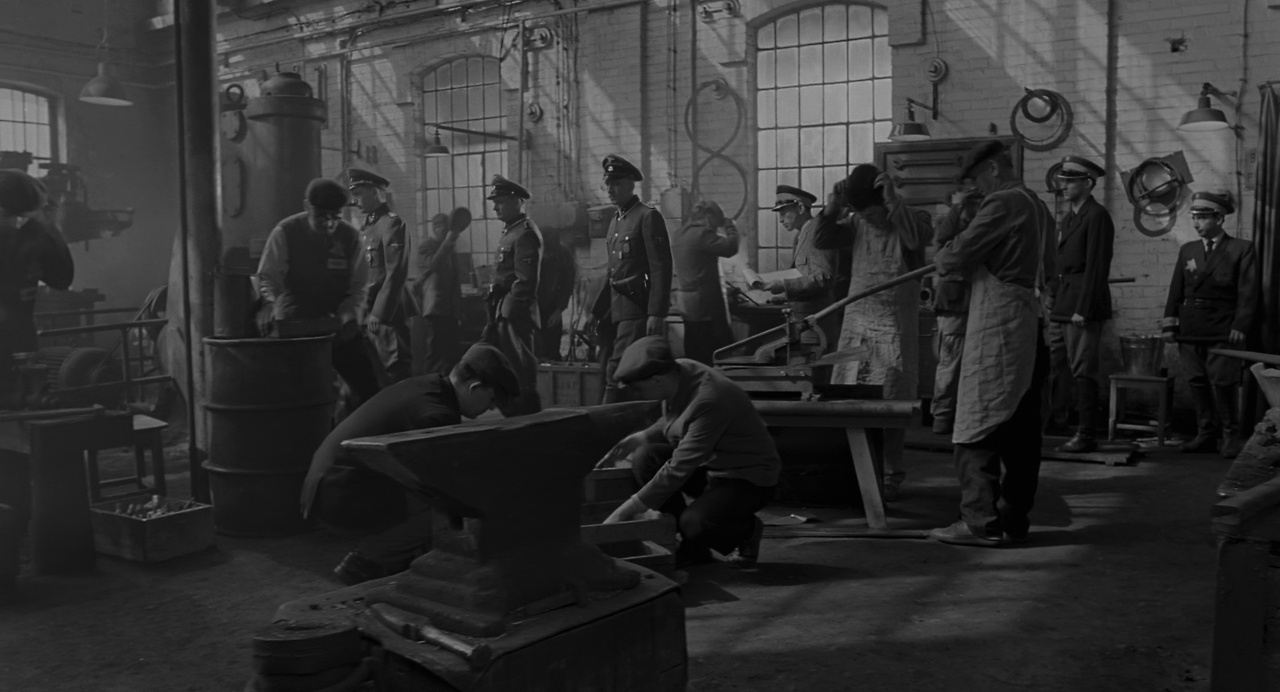 유대인들은 해방되었다. 쉰들러가 아내와 함께 공장을 떠나려 할 때, 슈탄은 지금까지의 쉰들러의 공적을 기록한 문서와 반지를 전해준다. 반지는 노동자들이 자신들의 금니를 녹여 가공한 것으로, 쉰들러에 대한 최대한의 경의와 감사를 표시한 선물이었다. 유대인들의 마음에 감격한 쉰들러는 자신이 조금만 더 힘이 있었더라도 더 많은 사람들을 구할 수 있었을 텐데라며 흐느낀다. 쉰들러는 유태인들과 뜨겁게 포옹한 후 그곳을 떠난다.