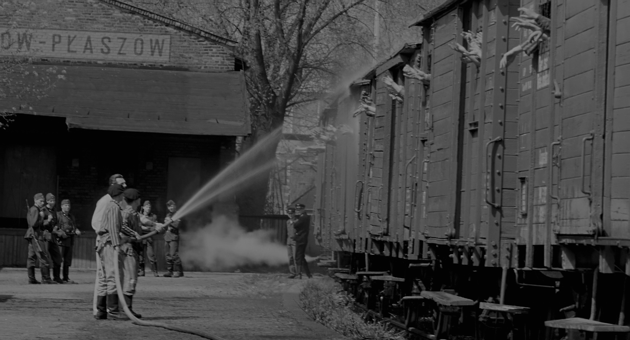 수많은 유대인들이 열차의 화물칸에 실려 어디론가로 보내졌다. 그들은 물 한 모금 마시지 못하고 갈증에 시달리며, 조그만 열차창을 통해 물을 갈구하고 있었다. 그 모습을 보다 못한 쉰들러는 역에 설치된 방화수를 기차에 뿌려 그들의 갈증을 덜어준다. 그러나 이러한 쉰들러의 행동은 독일의 인종분리법을 위반하였다 하여 감옥에 갇힌다. 몇 달 후 풀려난 쉰들러의 눈에 비친 세상은 그야말로 지옥이었다. 도시 근처의 언덕에서는 수용소와 정착촌에서 살해된 1만여 명의 유태인들의 시체를 소각하는 작업이 진행되고 있었다. 시체가 타는 냄새는 온 도시를 덮쳤다.