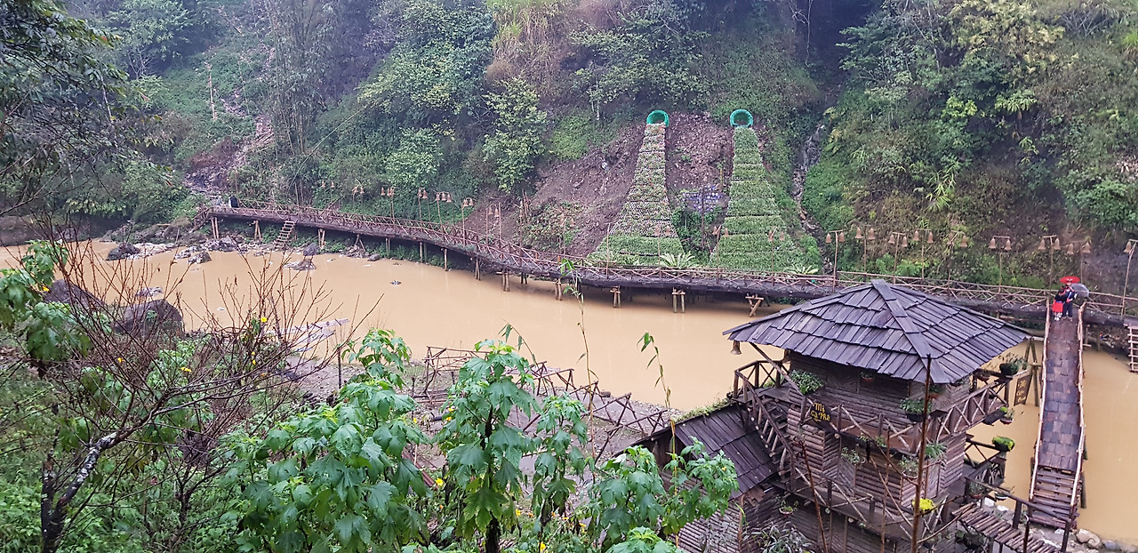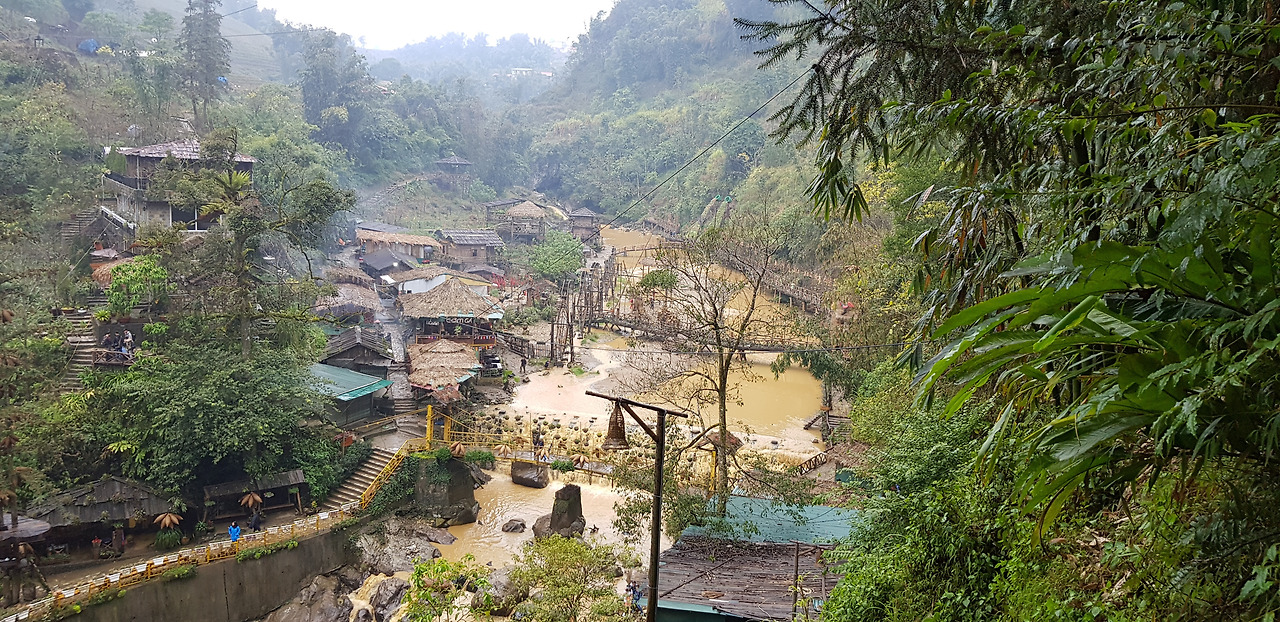 가다 보니 조그만 전망대가 나온다. 전망대로 올라가니, 사진에 자주 나오는 사파의 대표적 풍경, 계단 식 다랭이 논과 소수민족 전통가옥이 사진과 똑같은 모습으로 나타난다. 좁은 길을 따라 계속 내려가니 아름다운 계곡과 폭포가 나온다. 좀 전에 내린 폭우로 물은 누런 황톳물이다. 보통 계곡에는 맑고 깨끗한 물이 흘러야 하는데, 이곳은 황톳물 계곡도 잘 어울린다. 계곡이 급하다 보니 이곳저곳 아름다운 광경이 형성된다. 지금 이곳은 자연의 풍경이 아니다. 고산지대의 독특한 지형에 수 백 년 간 사람의 손이 들어가 새로운 풍경을 만들어내고, 다시 현대의 개발이 보태진 곳이다.
