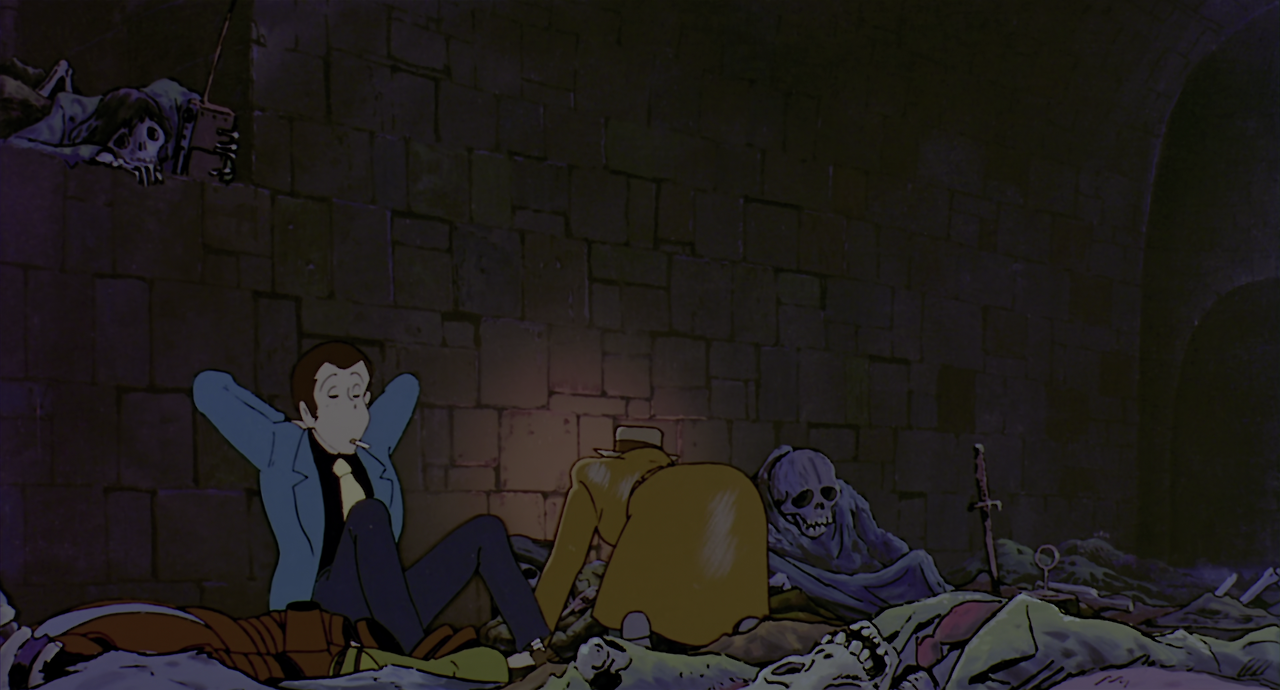 루팡은 암살단의 공격을 피한 후, 백작에게 자신이 클라리스를 데려갈 것이라고 선언한다. 그런 한편 루팡은 자신을 추격하고 있는 제니가타 경부에게 자신이 칼리오스트로 성으로 간다는 정보를 흘려 그도 경찰을 이끌고 성으로 오게 한다. 루팡은 수로를 통해 성에 잠입한 후 제니가타로 변장하여 성 깊숙이 들어간다. 루팡은 이미 성 안에 잠입해 있던 미네 후지코로부터 클라리스가 있은 곳을 알아내어 반지를 돌려주지만, 백작에게 발각되어 지하실로 통하는 함정에 떨어진다. 지하실은 뇌옥으로서 수많은 사람들의 백골이 쌓여있었다.