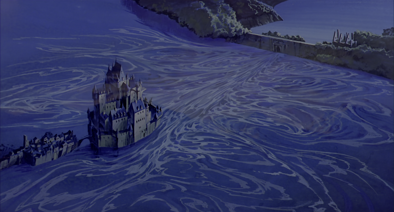 백작의 부하들과 고에몬이 싸우는 사이, 루팡과 클라리스는 수로를 가로질러 몸을 피한다. 백작의 부하들이 두 사람을 추격하자 그들은 시계탑 안으로 도망친다. 루팡과 클라리스는 시계탑 안에서 궁지에 몰린다. 루팡은 백작에게 반지의 보물에 대해 이야기해 주고는 모든 보물을 클라리스에게 넘겨주라고 요구한다. 협상하는 척하던 백작은 루팡이 던지는 반지를 받는 척하면서, 클라리스를 차서 호수로 떨어뜨린다. 루팡은 클라리스를 구하기 위해 몸을 날려 클라리스를 안고 함께 호수로 떨어진다.