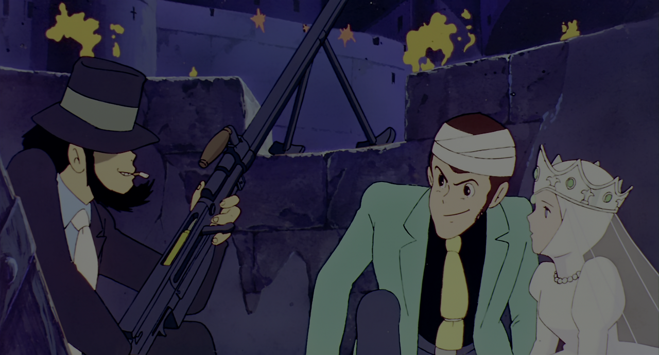 루팡은 위조지폐에 불을 질러 성 안을 혼란에 빠뜨린 후, 제니가타와 함께 백작의 헬리콥터를 빼앗아 클라리스를 구해 나오는 데 성공하는 듯했으나, 따라온 백작 일당의 총에 가슴을 맞고 중상을 입는다. 제니가타와 후지코의 도움으로 루팡은 겨우 구출되지만, 클라리스와 진짜 반지는 백작의 손에 떨어진다.