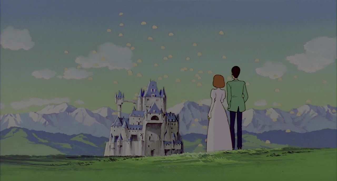 제니가타가 후지코와 함께 위성 TV 중계를 통해 위조지폐 공장의 모습을 전 세계로 알리자, 국제경찰도 움직이기 시작하여 카리소스트로 공국에 대한 수사가 본격적으로 시작되었다. 유엔의 공수부대가 성을 향해 낙하하는 것을 보며 클라리스는 루팡을 따라가려고 하지만, 루팡은 갈등하면서도 클라리스에게 자신을 위해 성에 머물도록 타이르고는 동료들과 함께 사라진다. 클라리스는 언젠가 반드시 다시 만날 것이라는 희망을 품고 도망치는 루팡과 그 뒤를 추격하는 제니가타의 차가 지평선에서 사라져 가는 광경을 지켜보고 있다.