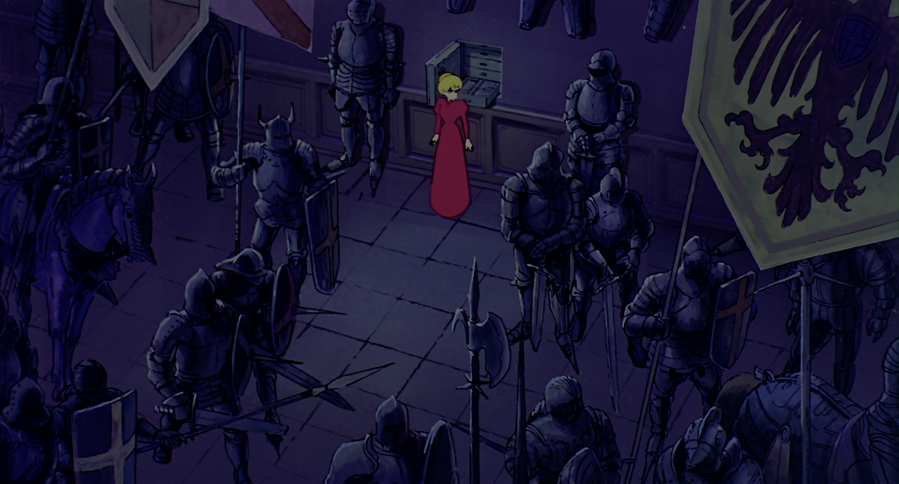 추적자들은 절벽 아래까지 내려온다. 루팡 덕택에 생명을 건진 클라리스는 추적자들이 루팡을 발견하지 못하도록 루팡으로부터 멀리 떨어진 곳으로 달려가 추적자들에게 잡혀간다. 한편 루팡은 클라리스가 두고 간 장갑에서 반지를 발견하고 옛날 일을 생각해 낸다. 그 반지는 그가 이전에 도둑질을 위해 칼리오스트로 성에 침입했다가 경비병들의 공격을 받고 중상을 입었을 때 자신을 돌봐준 어린 소녀가 끼고 있던 반지였다.