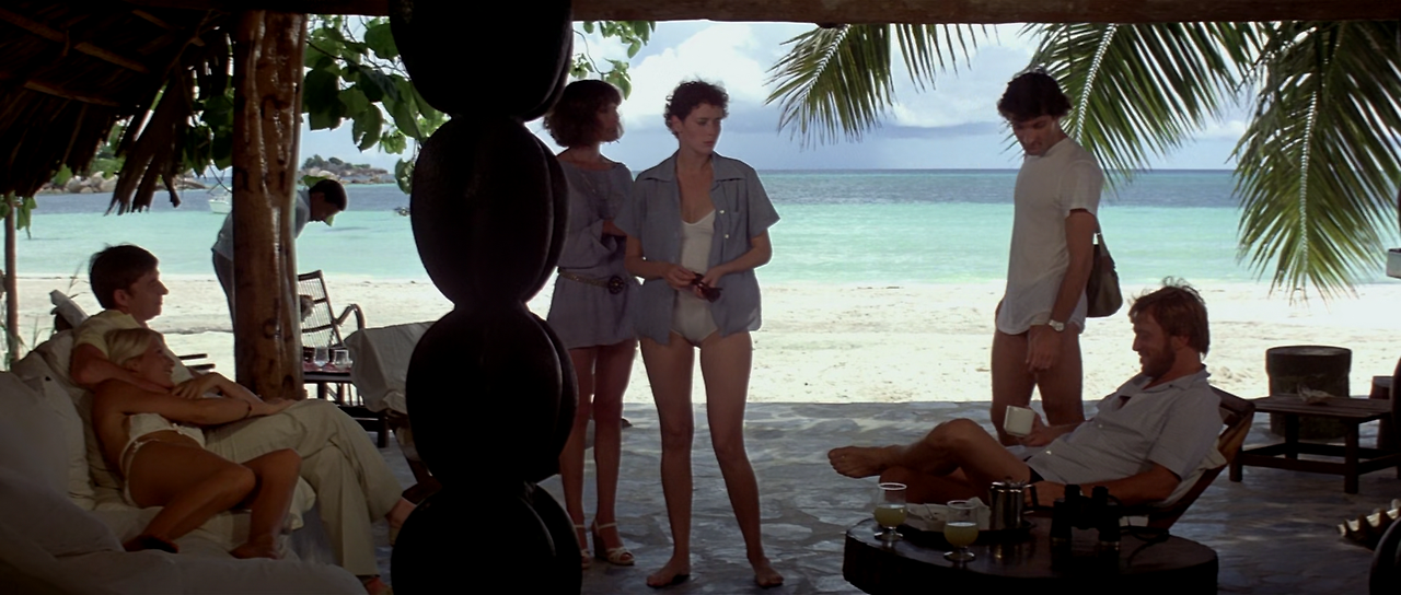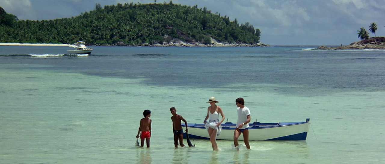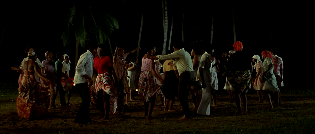 밤이 되자 원주민들의 춤 파티가 열렸다. 구경하고 있던 도로시가 옷을 벗고 춤을 추기 시작하는데, 쟝이 엠마뉴엘에게도 함께 춤을 추라고 권유한다. 엠마뉴엘이 싫다며 강한 거부감을 보이자, 쟝이 갑자기 손찌검을 하려고 한다. 이를 본 그레고리가 쟝을 때려 눕히고는 엠마뉴엘을 데리고 어둠 속으로 사라진다. 쟝은 그들을 찾아 나서지만, 결국 찾지 못하고 포기한다. 엠마뉴엘과 그레고리는 바닷가로 가서 알몸으로 헤엄을 즐기다가는 정사를 갖는다. 다음날 아침잠이 깬 그레고리는 쟝과 그 일행이 타고 있는 배가 섬을 떠나가는 것을 바라본다.