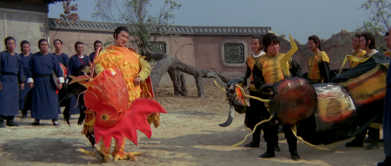 교실에서 장난을 치며 다투는 학동들은 밖에 나와서도 계속 다툰다. 허가옥이나 오덕지 모두 아버지가 무관을 운영하고 있다. 둘은 자기 집안의 현판을 걸고 싸우기로 한다. 경기 종목은 탈춤 무도이다. 오덕지와 친구들이 지네탈을 덮어쓰고 싸움에 임하자 하가옥은 지네의 천적인 닭의 탈을 쓰고 이에 대항한다. 이들의 싸움이 한창 열기를 더하자 집안 어른들까지 이 싸움에 끼어든다. 싸움이 너무 과열되자 훈장이 끼어들어 싸움을 말리고는 자신이 새 현판을 써주겠다며 이들을 달랜다.