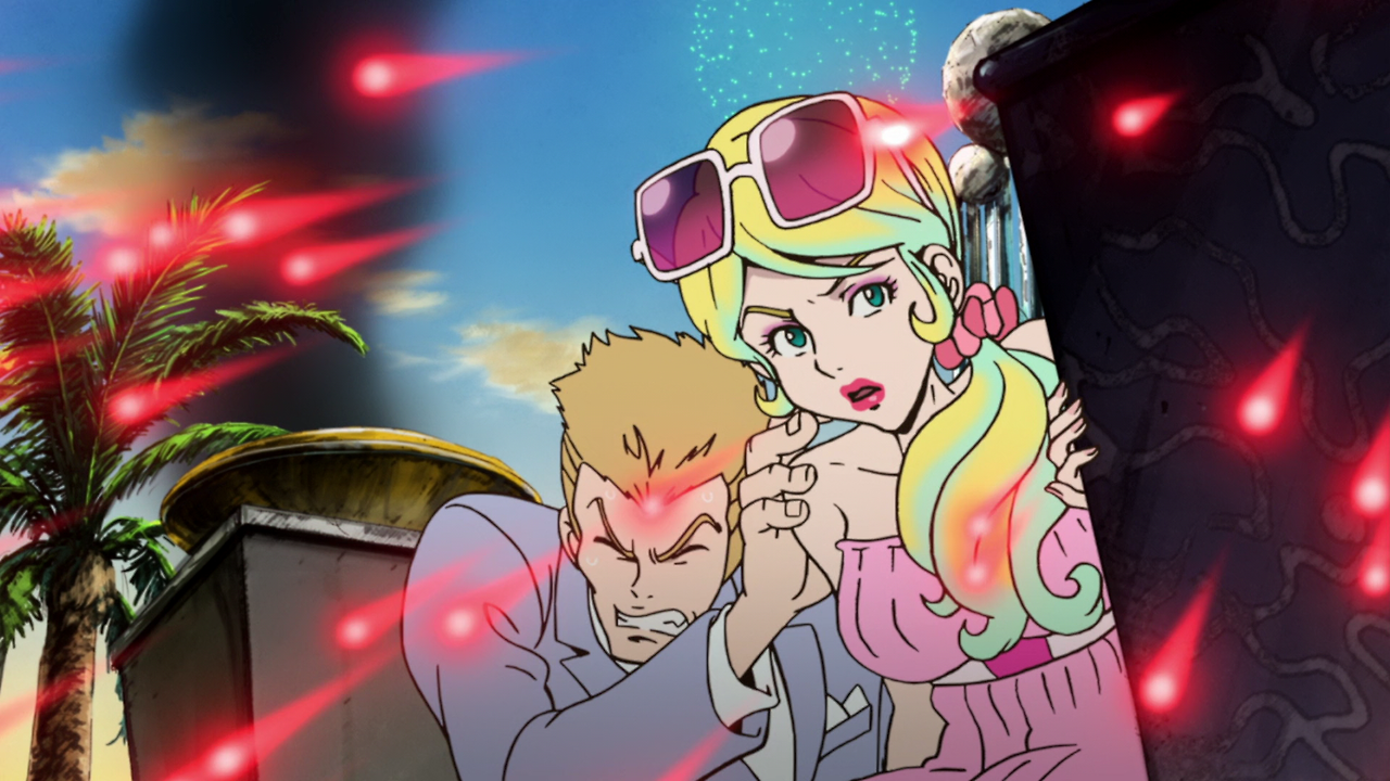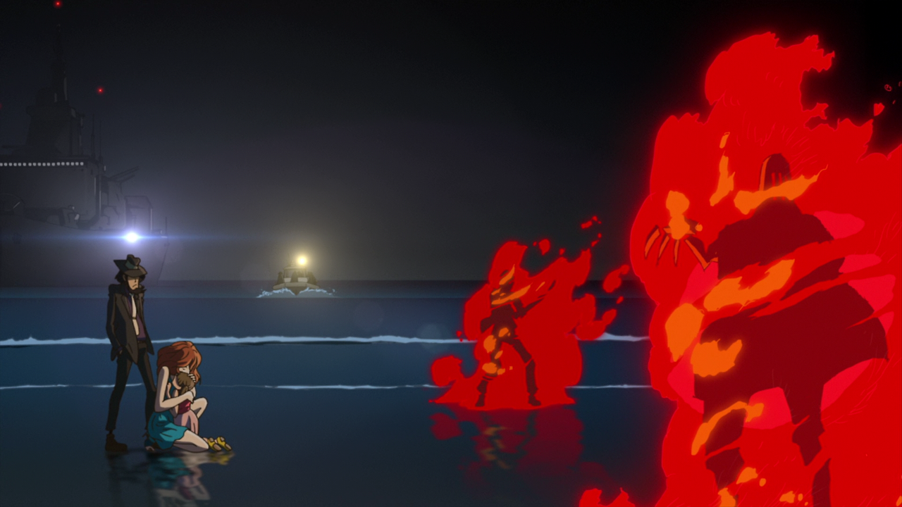 한편 이탈리라 경찰인 세르지오는 제니가타 경감에게 미네 후지코가 잠복해 있는 것을 알려주는 대가로 협력해 달라고 제안한다. 루팡은 교회에서 닉스와 마주친다. 루팡은 지하도로 도망가지만, 닉스는 이미 루팡의 도주로를 읽고 있다. 닉스는 소리를 포착하여 목표물이 어디로 가는가를 알아내는 예지력을 갖고 있어, 이 능력을 이용하여 루팡이 도주하는 곳에 먼저 가서 기다리고 있다. 그렇지만 루팡은 그의 초능력을 역이용하여 지겐이 체포되어 있는 곳으로 달려간다.