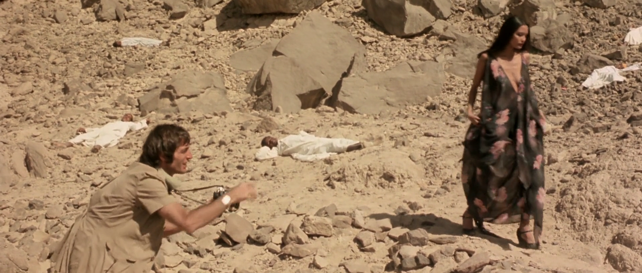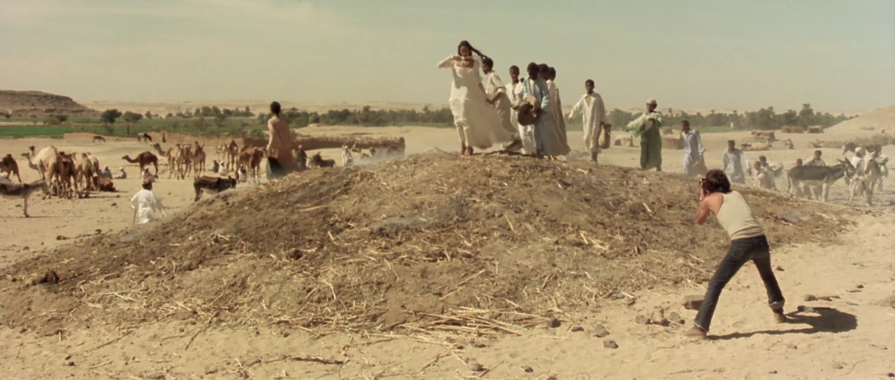 세 사람은 다른 마을로 향한다. 마을 사람들은 자루에 오물을 담아 마을 바깥에 더미를 만들고 있다. 카를로는 로라에게 오물 더미 위에서 포즈를 취하라고 강요한다. 로라가 오물 더미 위로 올라가 포즈를 취하고 사진촬영을 시작하지만, 마을 사람들은 로라의 옆에다가 계속 오물을 버린다. 카를로의 횡포에 더 이상 참을 수 없게 된 로라와 피나는 마르코를 사막에 남겨둔 채 지프를 타고 집으로 돌아온다.