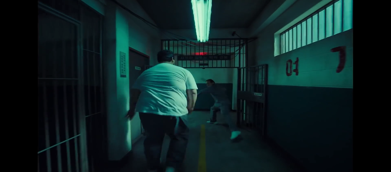 여러 명의 죄수가 한꺼번에 마강재에게 달려들어 그를 제압하려 하지만, 마강재는 괴력을 발휘해 이들을 하나씩 떼어내며 모두 처치한다. CCTV를 통해 이 광경을 본 간수장은 실탄이 장전된 권총을 꺼낸다. 다른 간수가 “실탄까지 쓸 거냐”고 묻자, 간수장은 “죄수든 누구든 마강재만 죽으면 그만”이라며 방을 나선다.