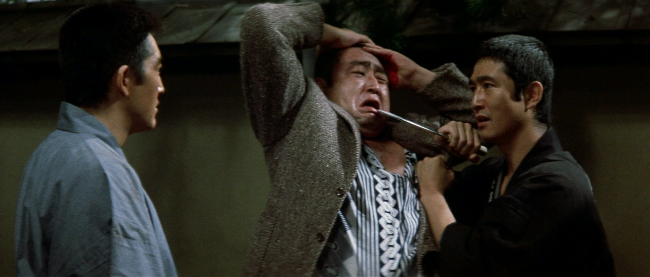 야쿠자 조직 마에바시 구미의 젊은 간부 가자마 분조(風間文三)는 조직의 식객인 하나다 히데지로(花田秀次郎, 다카쿠라 켄 분)와 함께 적대 조직의 본부를 습격해 두목 가와카츠를 죽인다. 이 과정에서 여러 명의 적을 죽인 분조는 자수하려 하지만, 두목 구로다 요나기치(黒田米吉)는 말단 조직원을 대신 자수시키겠으니 조용히 있으라고 말린다.