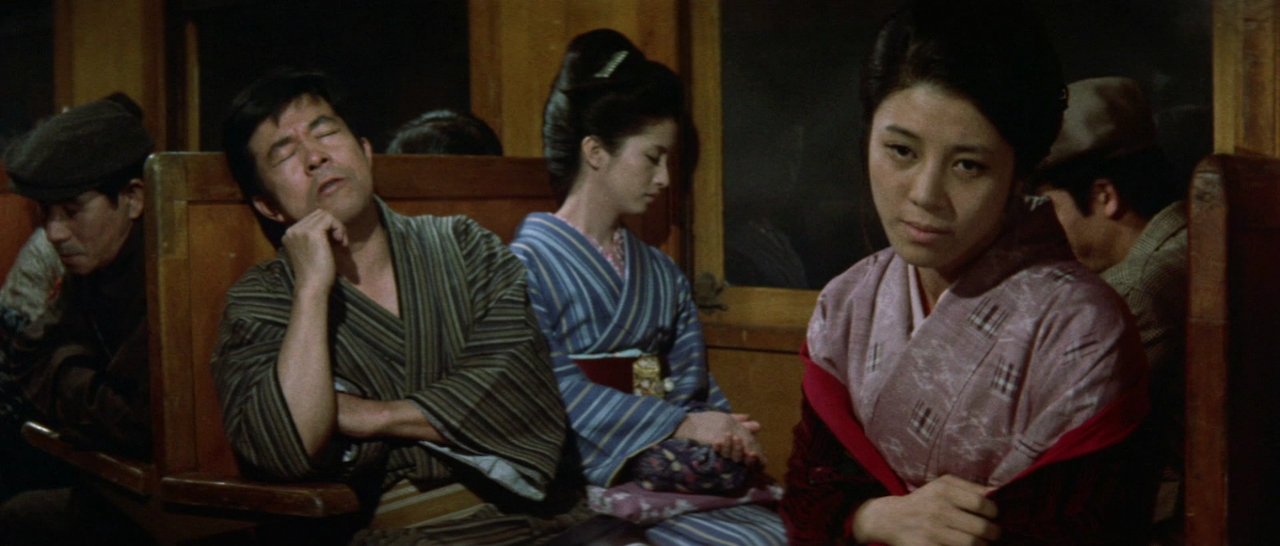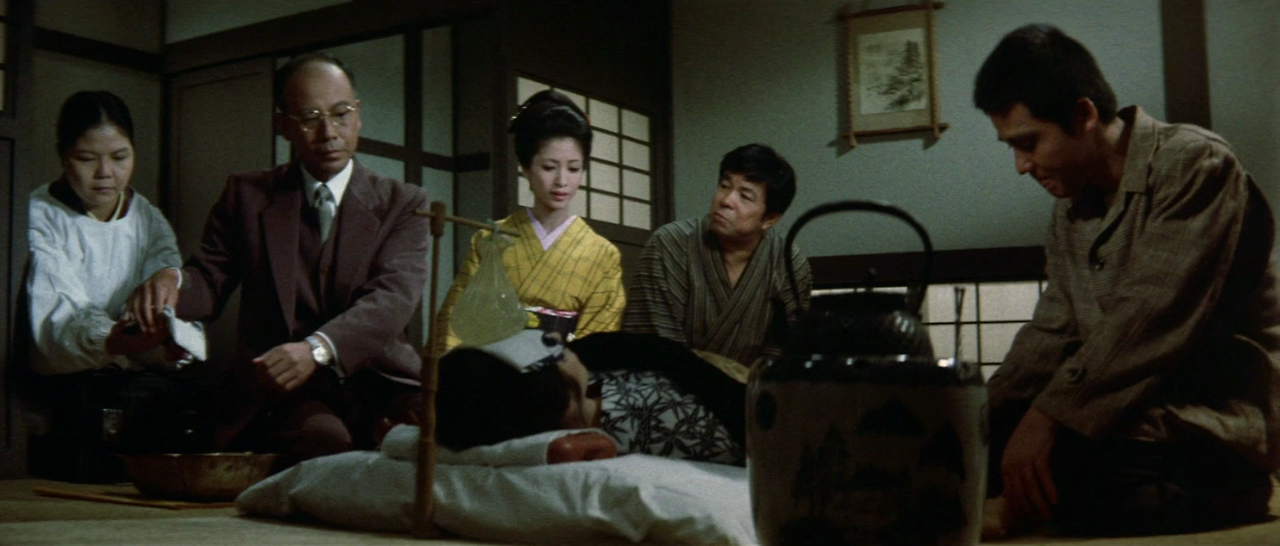 한편 오미노는 가나자와로 가는 기차 안에서 각혈을 하는데, 마침 맞은편 자리에 앉은 카요(加代)가 그녀를 돌봐준다. 카요는 이나바 구미의 두목인 산슈 마사지(三州政治)의 아내다. 오미노는 카요의 배려로 산슈의 집에서 치료를 받게 된다.