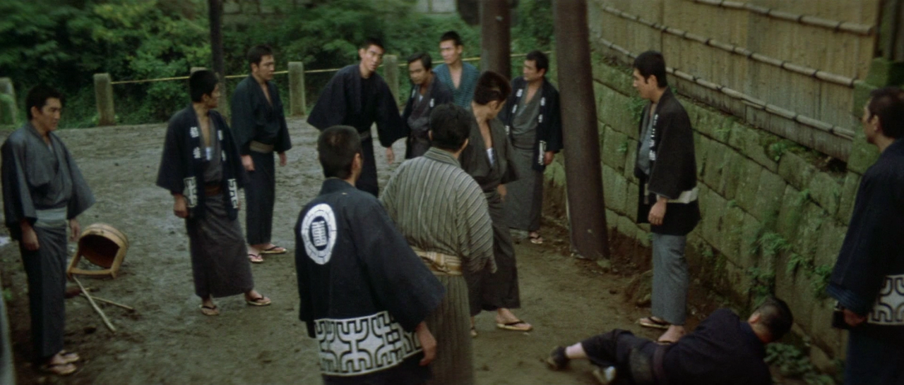 분조는 형 시게요시에게 오미노를 보낸다. 그 뒤 곧 추격대가 들이닥쳐 오미노의 행방을 묻는다. 분조는 모른다고 시치미를 떼지만, 그들은 오미노를 찾겠다며 이곳저곳을 마구 들쑤신다. 그들이 오미노를 찾아 떠난 뒤, 히데지로가 나타나 분조에게 두목에 대한 의리를 지키라고 조언한다. 그러나 분조는 이미 오미노와 함께 하기로 했다고 결연히 선언하지만, 히데지로는 남자에게는 의리가 먼저라며 설득한다. 분조도 결국 그 말을 받아들이기로 한다.