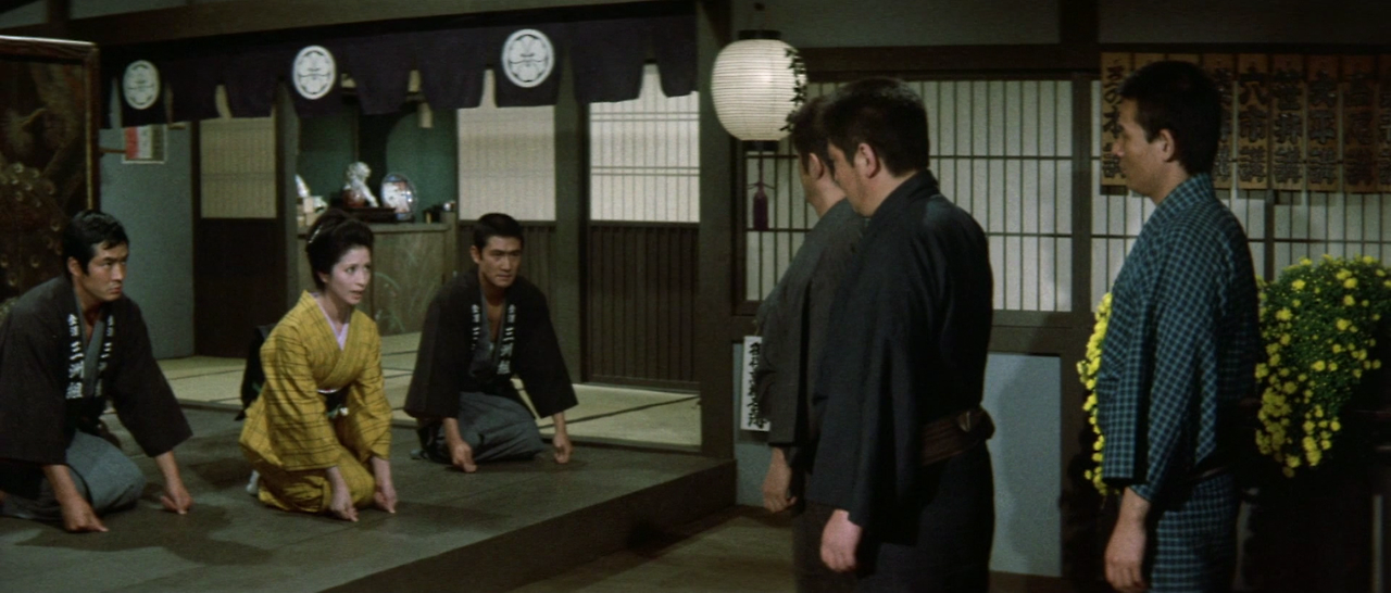 분조가 형을 찾아가자 그곳에 오미노가 기다리고 있었다. 형 시게요시는 분조에게 오미노가 몸이 아프다는 사실을 알려준다. 분조는 오미노에게 자신은 두목에게 의리를 지켜야 한다며 다시 그에게 돌아가라고 타이른다. 그러나 오미노는 그 말을 거절하고 함께 도망가자고 애원한다. 그녀는 두목 구로다가 분조에게 가와카츠를 죽이라고 명령한 것은 그 싸움에서 분조를 죽게 해 자신을 차지할 속셈이었다고 폭로한다. 그러니 그런 그에게 지킬 의리 따위는 없다고 말한다. 또 오미노는 지금 돌아가 봤자 둘 다 죽을 뿐이라며, 자신 혼자라면 기꺼이 죽음을 선택하겠다고 한다. 그 말을 들은 분조는 오미노와 함께하겠다고 맹세한다.
