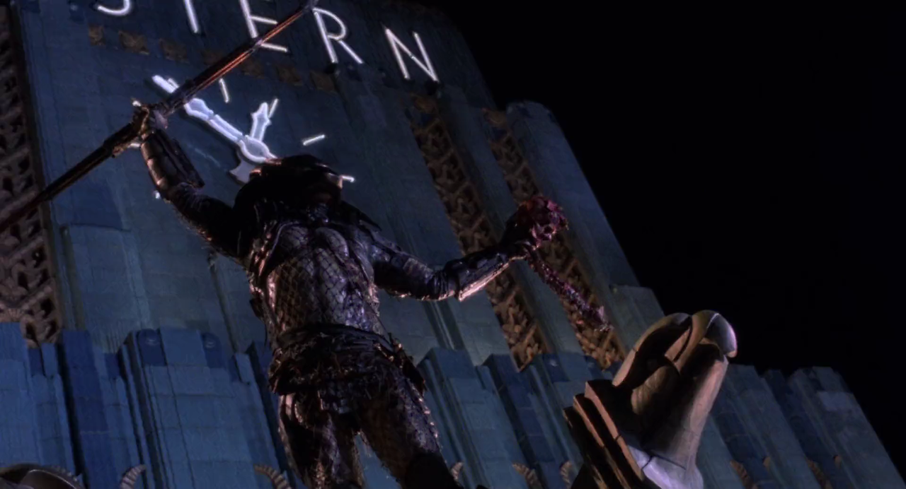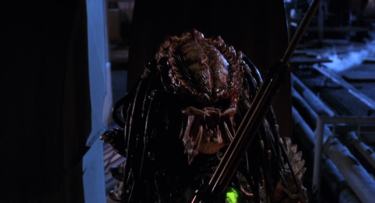 해리건은 다시 괴물을 추격하지만, 키스가 그의 앞을 가로막는다. 키스는 해리건을 수사팀의 이동 본부로 데려가 이 사건에 대한 모든 진실을 털어놓는다. 살인을 저지르고 있는 괴물은 프레데터라는 외계인이며, 이는 10년 전 남미 정글에서 특공대에 의해 제거된 프레데터와 같은 종족으로 추측된다고 했다. 그리고 프레데터는 인간 사냥을 위해 외계에서 날아온 생명체라고 한다.