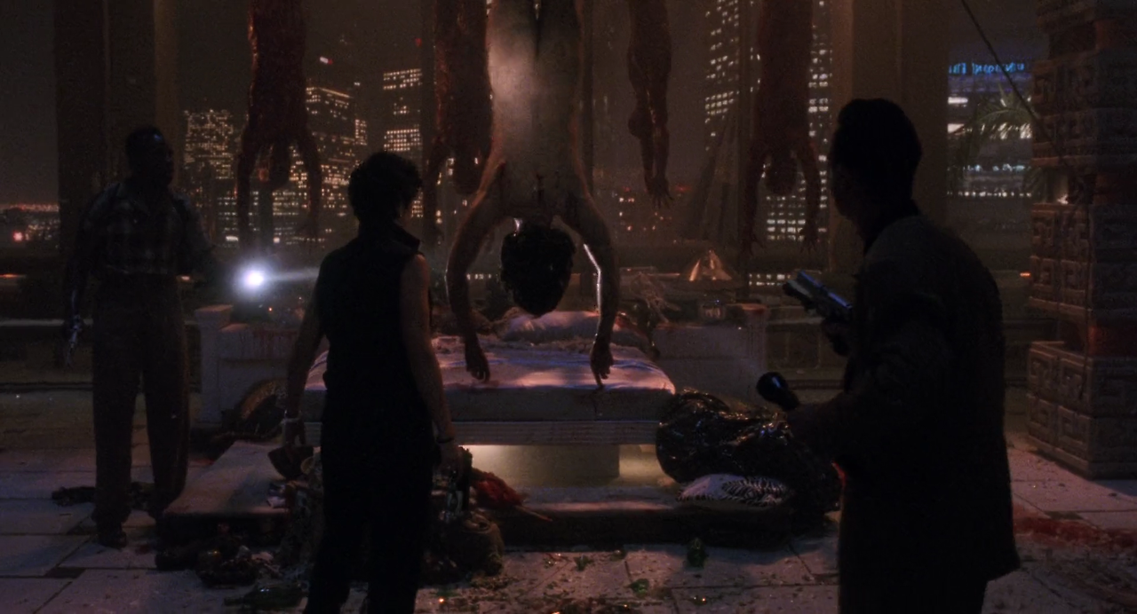 이번 잔혹한 학살극은 콜롬비아 마약 조직과 적대적인 관계에 있는 자메이카 조직의 짓이 아닌가 의심되었지만, 중무장한 대규모 갱단이 단기간에 살해되고, 이들이 밧줄이나 사다리도 없이 높이 10미터가 넘는 벽에 걸려 있다는 점에서 도무지 인간의 소행이라고 보기 어려웠다. 경찰서로 돌아온 해리건은 연방 정부의 마약 단속 요원 키스로부터 사건 수사를 자신들에게 넘기라는 명령을 받는다.