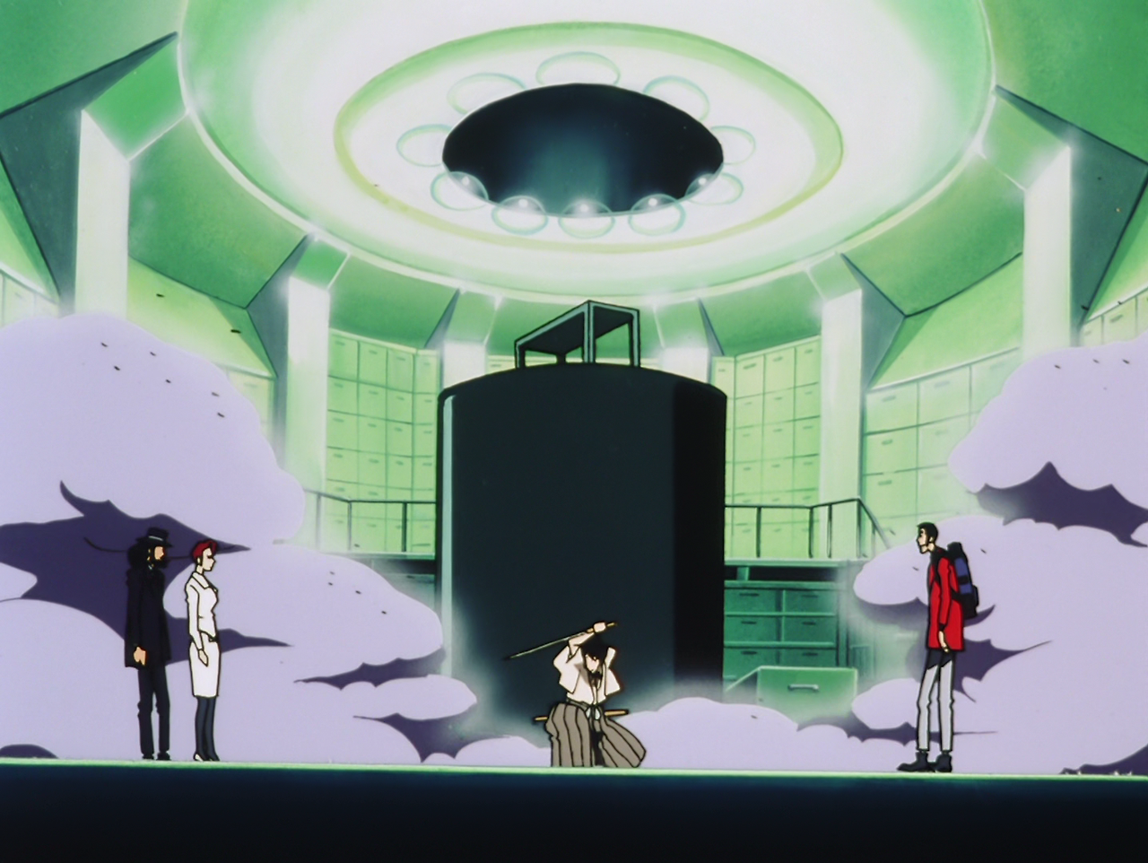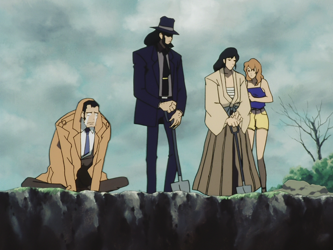 루팡이 죽었다는 소식을 들은 후지코는 현장으로 달려가고, 제니가타 경감은 루팡의 죽음을 슬퍼하며 국제경찰(ICPO)에 사직서를 제출한다. 지겐은 루팡의 복수를 위해 나비코프를 죽이기로 결심한다. 그러나 나비코프는 신시아의 지시에 따라 지겐을 죽이기 위해 기다리다가 시한폭탄을 설치하고 떠나고, 복수를 위해 찾아온 지겐, 고에몽, 미네 후지코는 궁지에 몰린다.