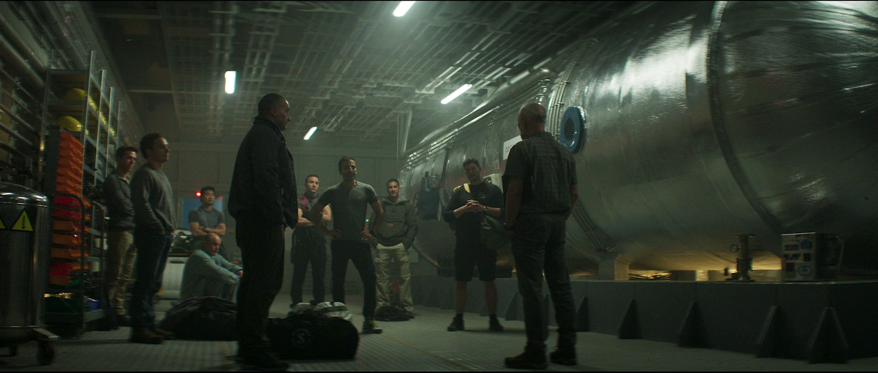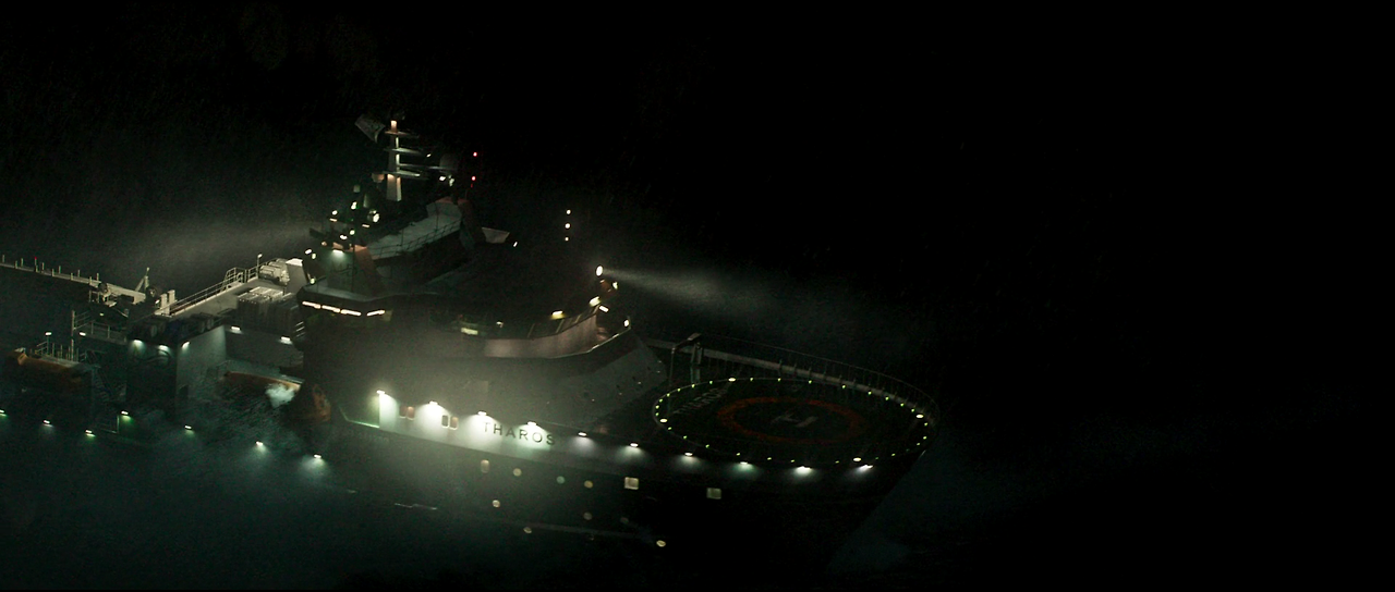 한편, 바다 위의 모선에서는 선원들이 자동 위치조정 장치의 오작동을 해결하기 위해 서두른다. 모선 아래 해저에는 가스관이 거미줄처럼 설치되어 있어 섣불리 닻을 내릴 수 없다. 닻을 내리다가 가스관을 잘못 건드리면 대규모 재앙이 발생할 수 있기 때문이다. 다른 선택의 여지가 없는 상황에서 선장과 일등 항해사는 선박의 추진기를 수동으로 작동해 모선이 작업 현장에서 더 멀리 표류하는 것을 막고, 동시에 다른 엔지니어는 자동 위치조정 장치를 재부팅하여 방향을 바로잡기 위해 모든 수단을 강구한다.