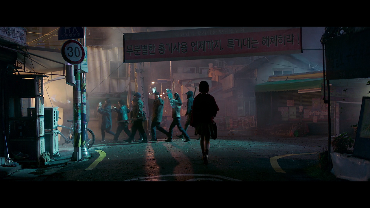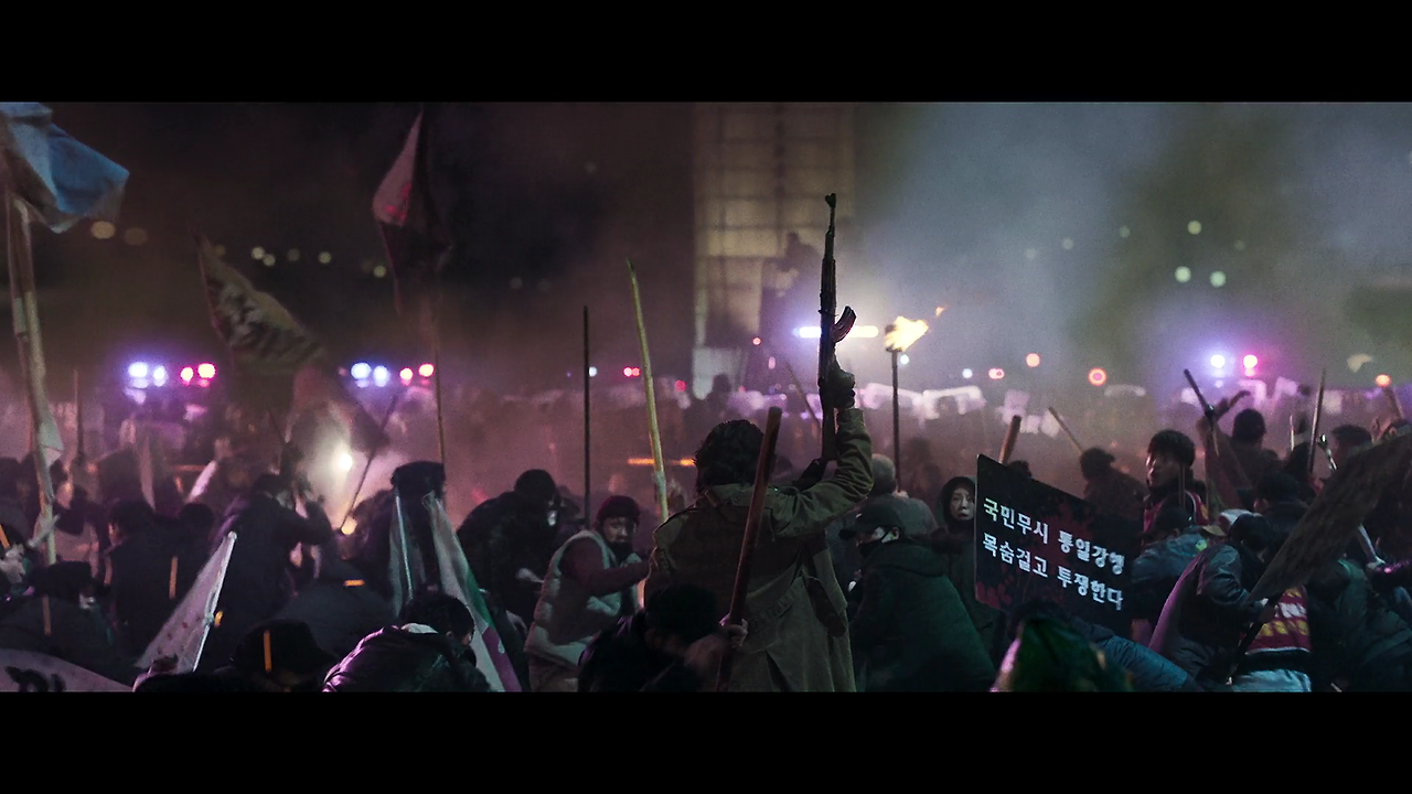 특기대원들이 섹트의 아지트로 들이닥쳤다. 섹트 지도부는 각자 흩어져 도망가고, 정예 특기대원인 ‘임중경’(강동원 분)과 ‘김철민’(최민호 분)은 그들을 쫓는다. 그들은 섹트 단원들을 막다른 길로 몰아넣는다. 중경이 항복을 권유했으나 그들은 총을 쏘며 반격을 가한다. 특기대원들은 일제 사격으로 그들을 모두 사살한다. 살아남은 소녀 한 명이 도주를 한다. 그녀는 도주하다가 중경과 철민을 마주친다. 그녀는 폭탄을 들고 있다. 철민이 중경에게 위험하다고 그녀를 사살하라고 소리치지만, 중경이 그 말을 듣지 않고 소녀에게 자수하라고 설득한다. 그러나 소녀는 폭탄을 터뜨려 자폭하고 만다.