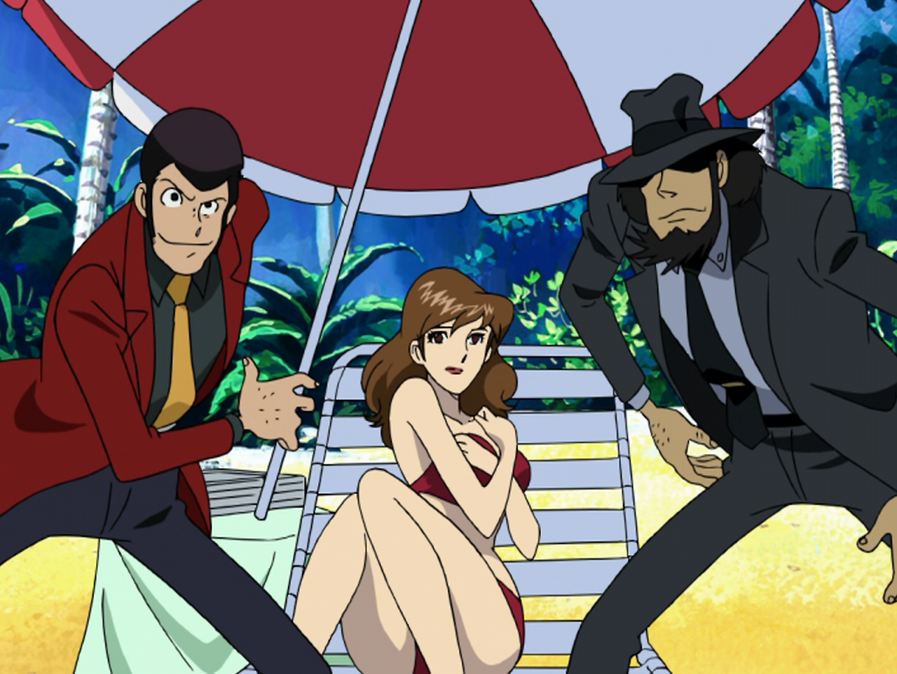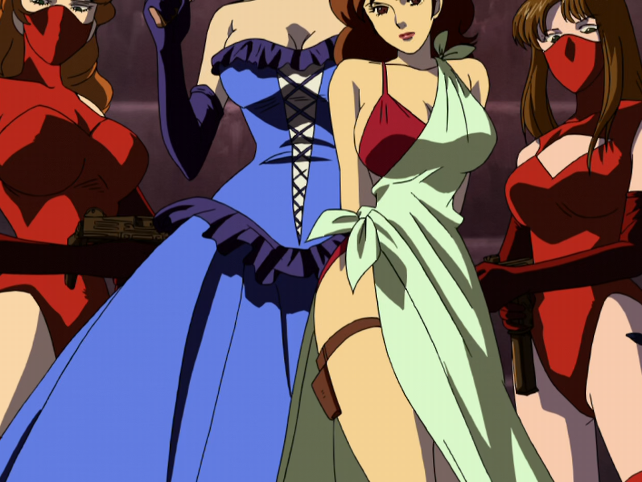 루팡은 카지노에서 미녀 소피와 친해진다. 또한 지겐은 뒷골목에서 깡패들에게 습격당한 미인 마술사 린다를 구해 준다. 고에몽은 무뎌진 참철검을 수리하기 위해 전설적인 도검 장인인 히가시 진고로를 찾다가 산에서 낚시를 즐기는 노인을 만난다. 고에몽은 그가 히가시 진고로라고 생각했으나, 노인은 아니라고 부정한다. 돌아오는 길에 고에몽은 식당에서 여주인 카오루를 만난다. 그러나 세 사람이 만난 미녀들은 “포이즌 소피”, “폭격기 린다”, “살인마 카오루”라는 별명을 가진 블러디 엔젤스의 간부들이었다.