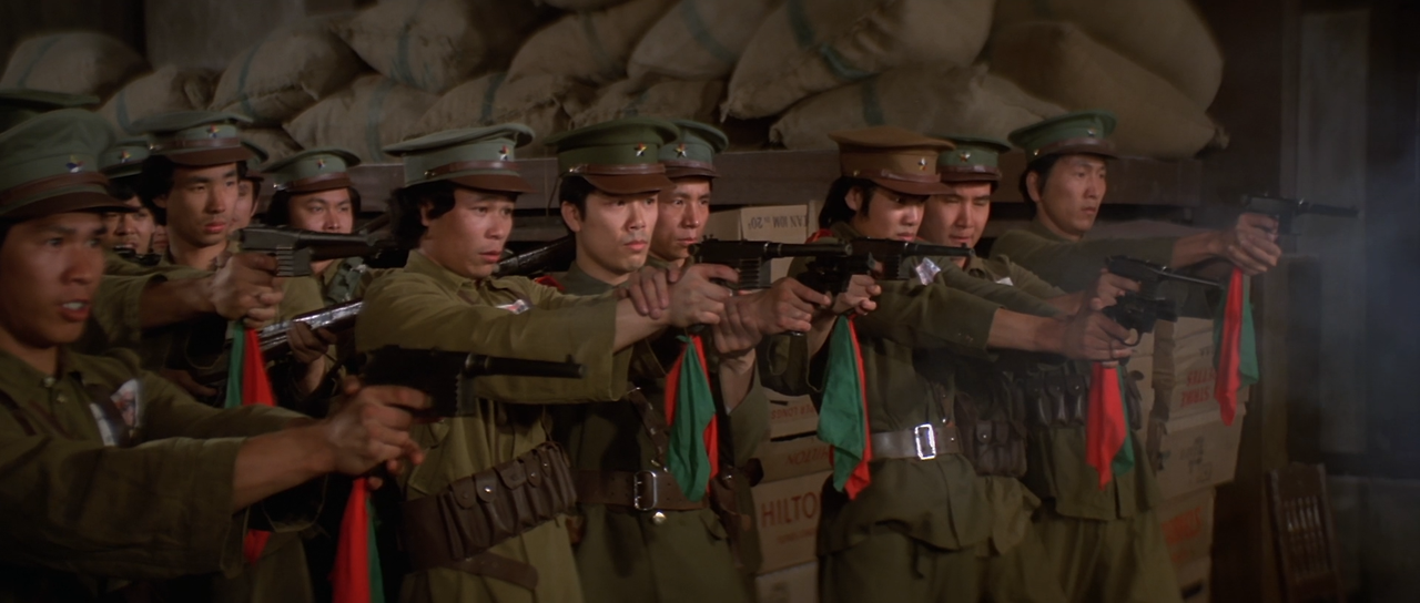 창고 안에서는 여전히 치열한 결투가 벌어지고 있었다. 한패창의 부하들은 창고에 도착하였지만 문이 안쪽에서 잠겨 열리지 않는다. 그들은 창고 문을 파괴하려 한다. 한편 창고 안에서 세 친구는 밖에 이미 한패창의 부하들이 도착했다는 사실을 알았다. 그들은 힘을 합해 드디어 한패창을 죽이는 데 성공한다. 그러나 그 순간 한패창의 부하들도 창고 안으로 난입해 들어왔다. 세 친구는 창고에서 탈출하려 하지만, 한패창의 부하 군대의 총에 맞아 모두 사망하고 만다.