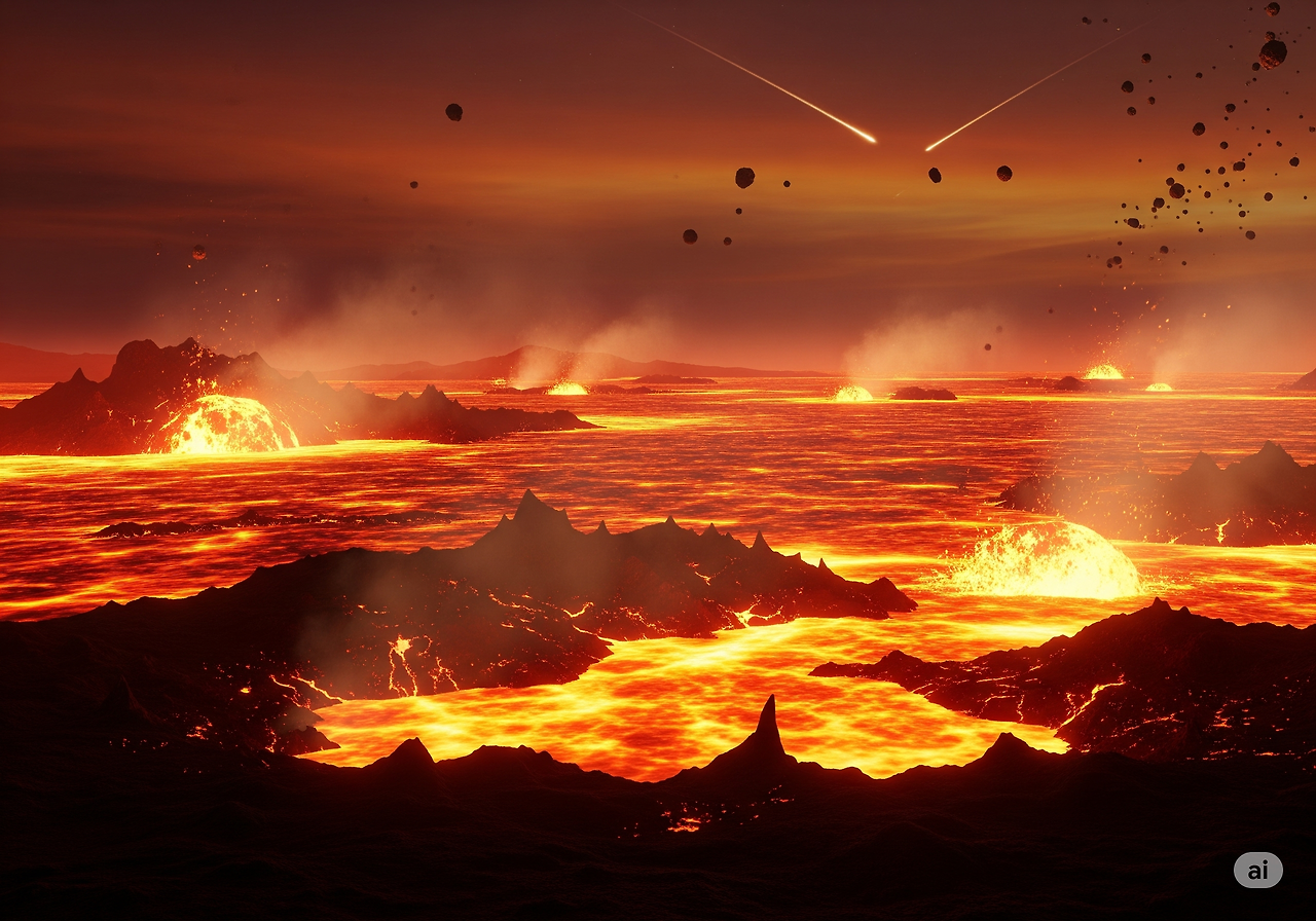 그러면 지각은 어떻게 해서 생겨났을까? 지구의 지각은 초기 지구의 마그마 바다가 식어 굳으면서 형성되었다. 약 46억 년 전, 지구가 처음 형성되었을 때 지구는 소행성 및 다른 미행성체의 충돌과 방사성 원소의 붕괴열로 인해 표면이 녹아있는 마그마 바다 상태였다. 시간이 지나면서 충돌이 줄어들고 지구의 열이 우주로 방출되면서, 마그마 바다는 서서히 식기 시작했다. 이 과정에서 밀도가 낮은 규산염 물질들이 표면으로 떠올라 굳어지면서 최초의 얇은 껍질, 즉 원시 지각이 만들어졌다. 하지만 이 원시 지각은 끊임없는 운석 충돌로 인해 파괴되고 다시 마그마 바다에서 재형성되는 과정을 반복했을 것으로 추정된다.