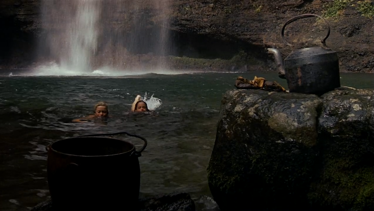 한편 릴리가 폭포에서 수영을 즐기고 있을 때 선원인 퀸란이 그녀를 훔쳐보고 있다. 퀸란이 그녀를 덮치려다가 머리에 장식한 진주를 발견한다. 퀸란은 릴리를 오두막으로 데려와 더 많은 진주를 달라고 한다. 그리고 그는 진주가 없다는 릴리의 말에 그녀를 강간하려 한다. 이때 리처드가 달려와 릴리를 구해준다. 리처드와 퀸란 사이에 싸움이 벌어진다. 화가 난 퀸란은 총을 빼 들고 쏜다. 리처드는 도망치고, 퀸란은 죽이겠다며 총을 쏘며 그 뒤를 쫓는다.