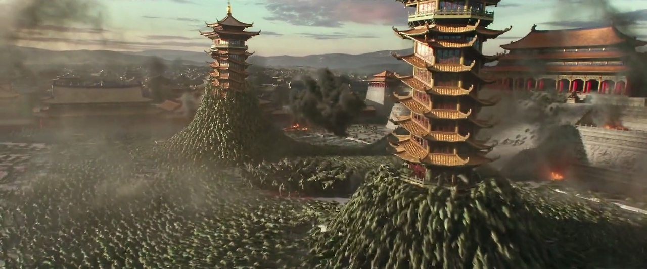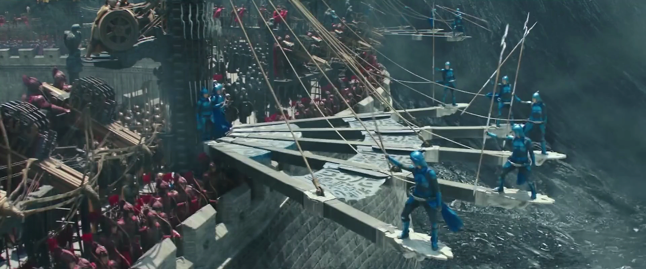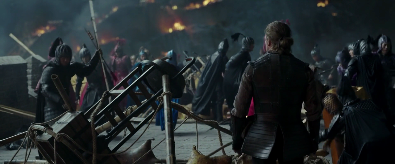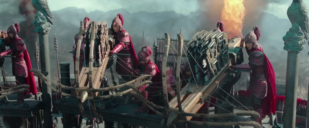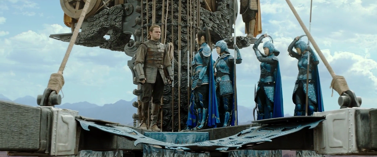 이 영화는 미국 드라마 <왕좌의 게임>과 영화 <반지의 제왕>을 적당히 섞어 놓은 듯한 느낌이 든다. 큰 장벽을 방패로 북쪽에서 내려온 괴물들과 싸운다는 설정은 <왕좌의 게임> 시즌 1과 거의 흡사한 느낌이 된다. 요즘 중국에서 이런 류의 판타지 영화를 많이 제작한다. 나는 이런 류의 영화를 즐기지만, 중국제 판타지 영화는 정말 형편없다. 이번 영화는 중국의 톱 감독 장이머우가 지휘를 하였기 때문인지 다른 중국제 판타지에 비해서는 월등히 낫다.