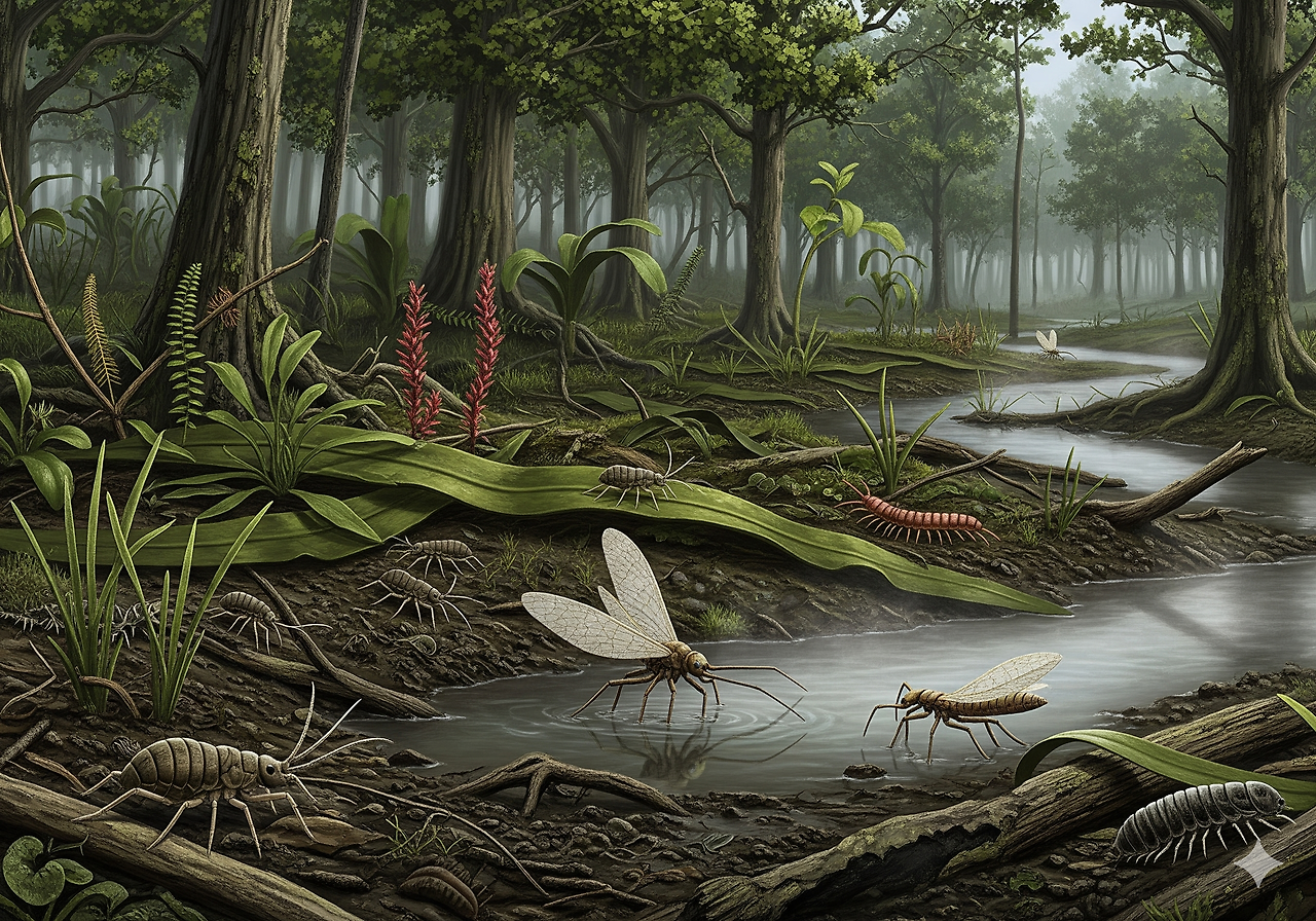 육상 식물이 숲을 형성하면서, 절지동물이 크게 번성하여 다양한 종으로 분화하였다.