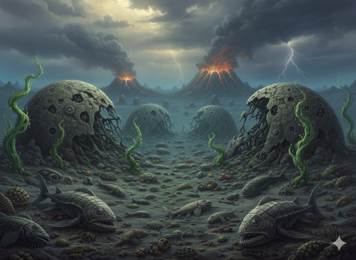 데본기 말기의 대멸종 사건으로 인해 판피어류와 같은 많은 해양 생물들이 사라졌다. 이 멸종은 이후 바다 생태계의 재편을 가져왔다.