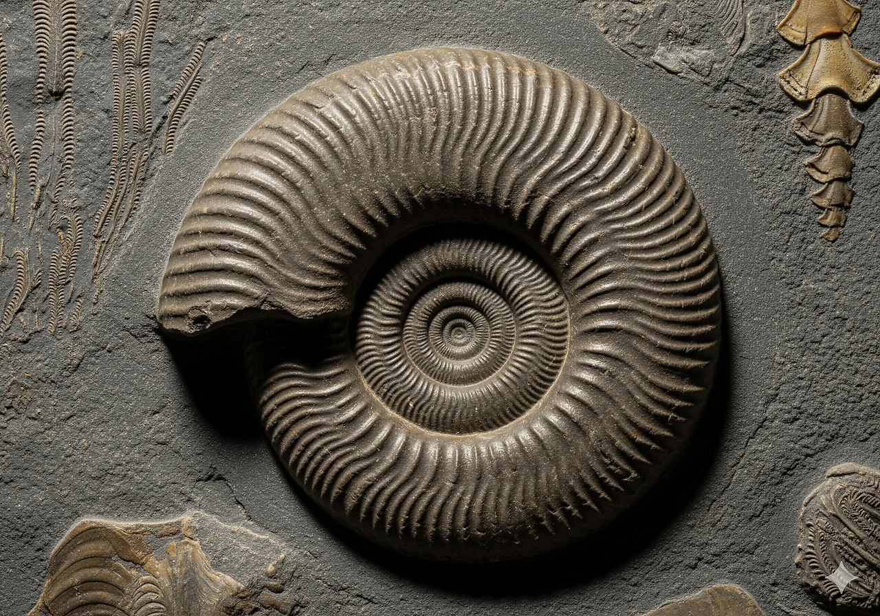 • 암모나이트 (Ammonoids): 앵무조개와 같은 두족류의 한 종류로, 데본기에 처음 나타나 이후 번성하게 되었다.
