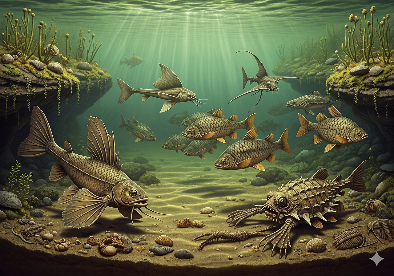 데본기는 약 4억 1,600만 년 전부터 3억 5,920만 년 전까지의 시기로, “어류의 시대”라 불린다. 이 시기는 해양과 육지 생태계 모두에서 큰 진화적 변화가 일어났다.