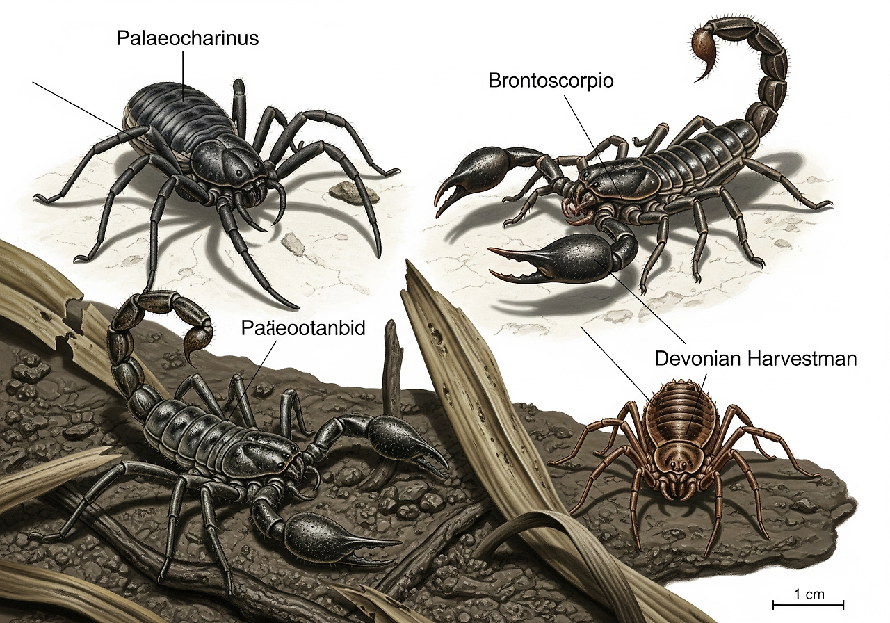 • 거미류: 거미, 전갈, 응애와 같은 거미류의 조상들이 육지 환경에 성공적으로 적응하였다.