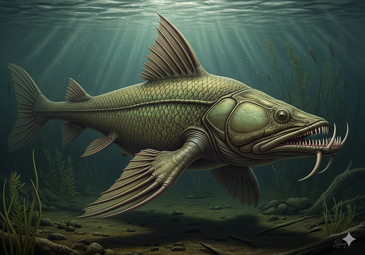 • 연골어류(Cartilaginous Fishes): 상어와 가오리의 조상들이 번성하였다. 이들은 데본기 말의 대멸종에서 살아남아 해양 생태계의 주요 포식자 역할을 유지하였다.