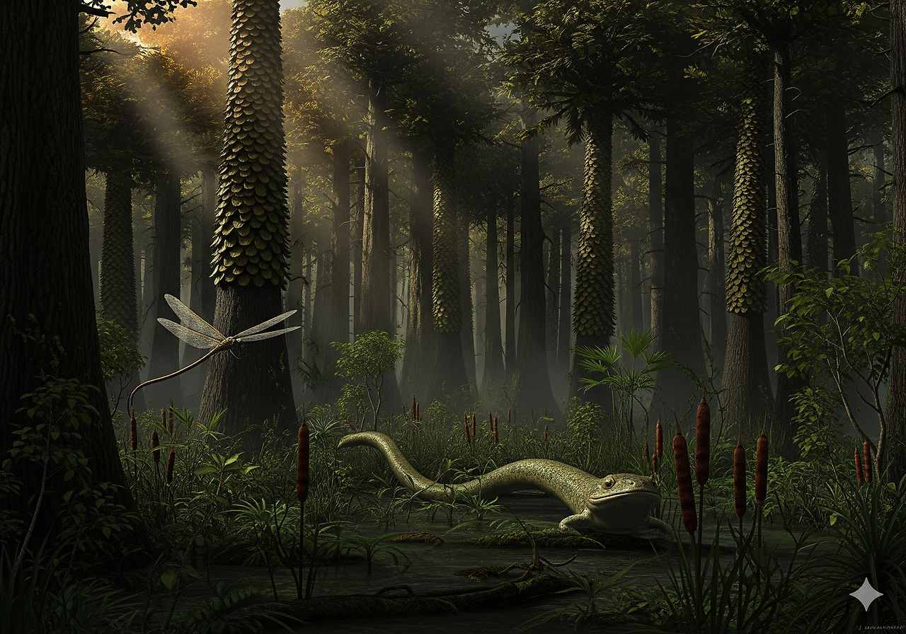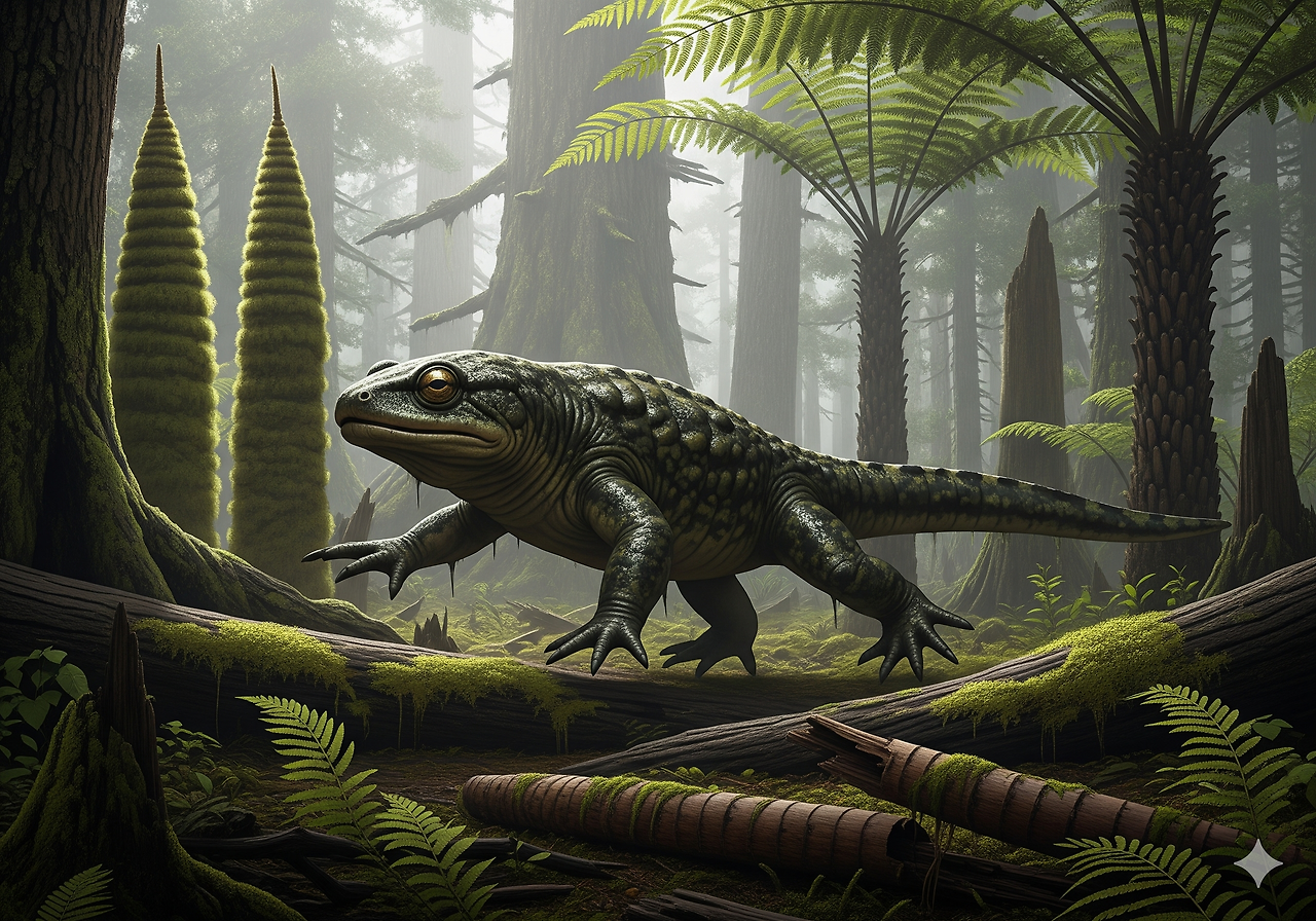 • 안트라코사우루스 (Anthracosaur): 석탄기를 대표하는 양서류 그룹으로, 현재 파충류의 조상으로 여겨지는 동물이다. 이들은 육상 생활에 더 잘 적응하여, 파충류로 진화하는 데 중요한 역할을 하였다.