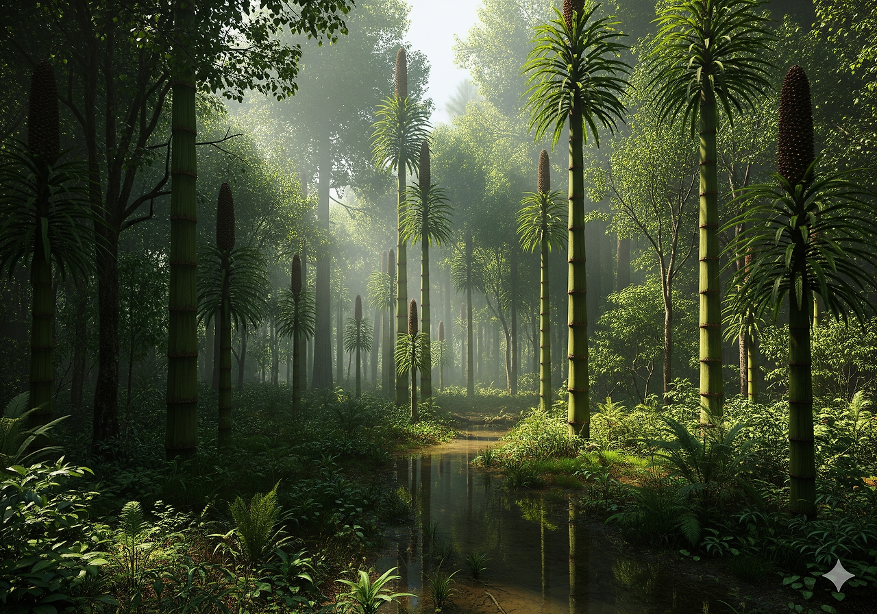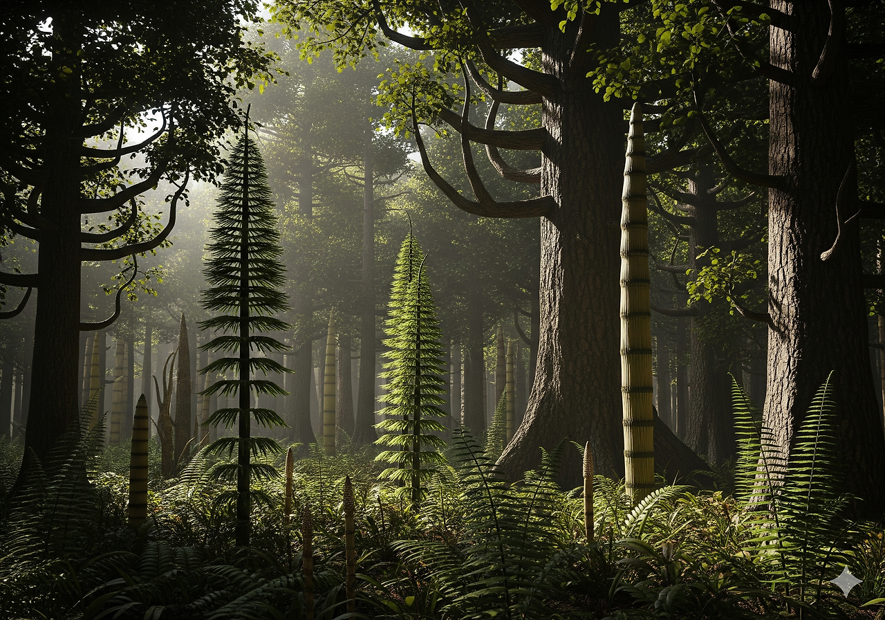 • 쇠뜨기류: 높이가 20m에 달하는 칼라미테스(Calamites)가 대표적인 쇠뜨기류이다.