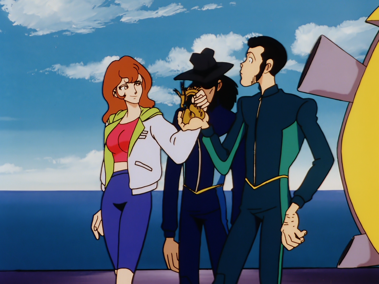 루팡은 훔친 심해 탐사선을 타고 바닷속에 가라앉은 타이타닉호에 들어가 용 조각상을 손에 넣는다. 루팡이 바다 위로 올라오자, 그것을 탈취하려는 진진충과 루팡을 체포하려는 제니가타 경감이 나타나고, 뒤이어 고에몽도 기쿄와 함께 나타나 루팡에게 용 조각상을 넘기라고 하면서 거절하면 베겠다고 으름장을 놓는다. 결국 이들 간의 싸움이 벌어지고, 결국 용 조각상은 진진충의 손에 들어가고, 루팡은 탈출하는 데 성공한다.