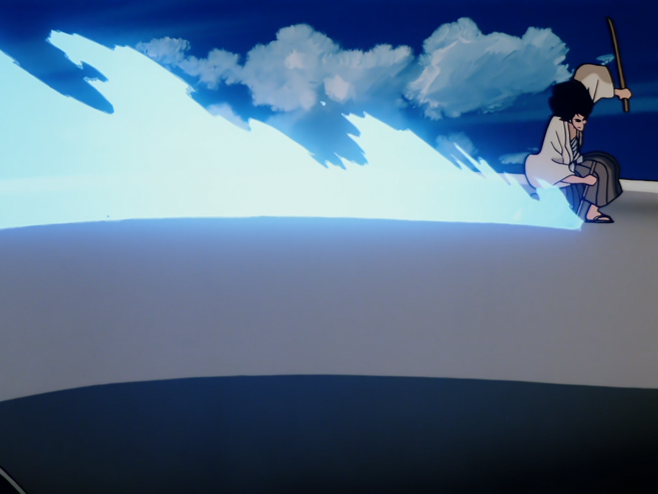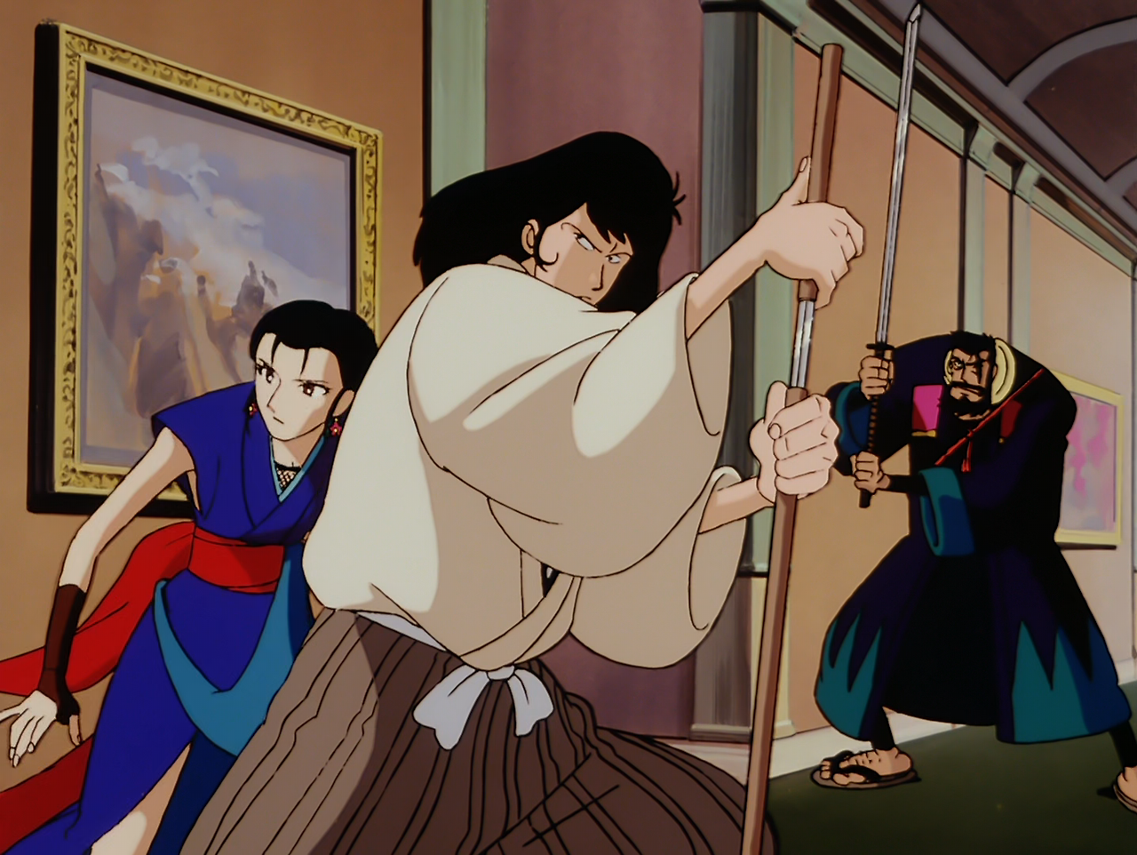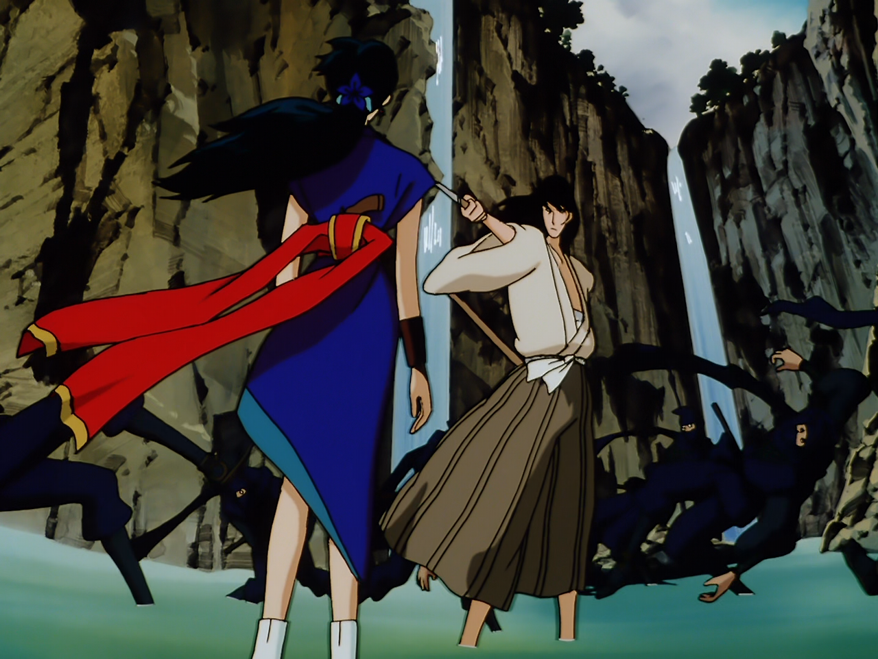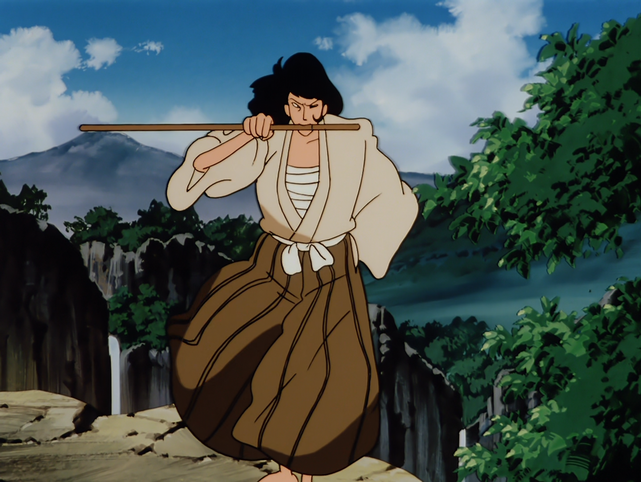 한편, 고에몽은 일본의 깊은 산속에서 조상으로부터 전해 내려온 어떤 "두루마리"를 찾고 있었다. 그곳에서 그는 다시 한번 수수께끼의 닌자 집단과 이미 죽었다고 생각한 쓰게의 공격을 받는데, 그들의 목표가 "두루마리"라고 한다. 이들의 협공으로 고에몽은 위험에 처하지만, 어린 시절 함께 수련하였던 여자 닌자 기쿄(桔梗)의 도움을 받아 위기에서 벗어난다.
