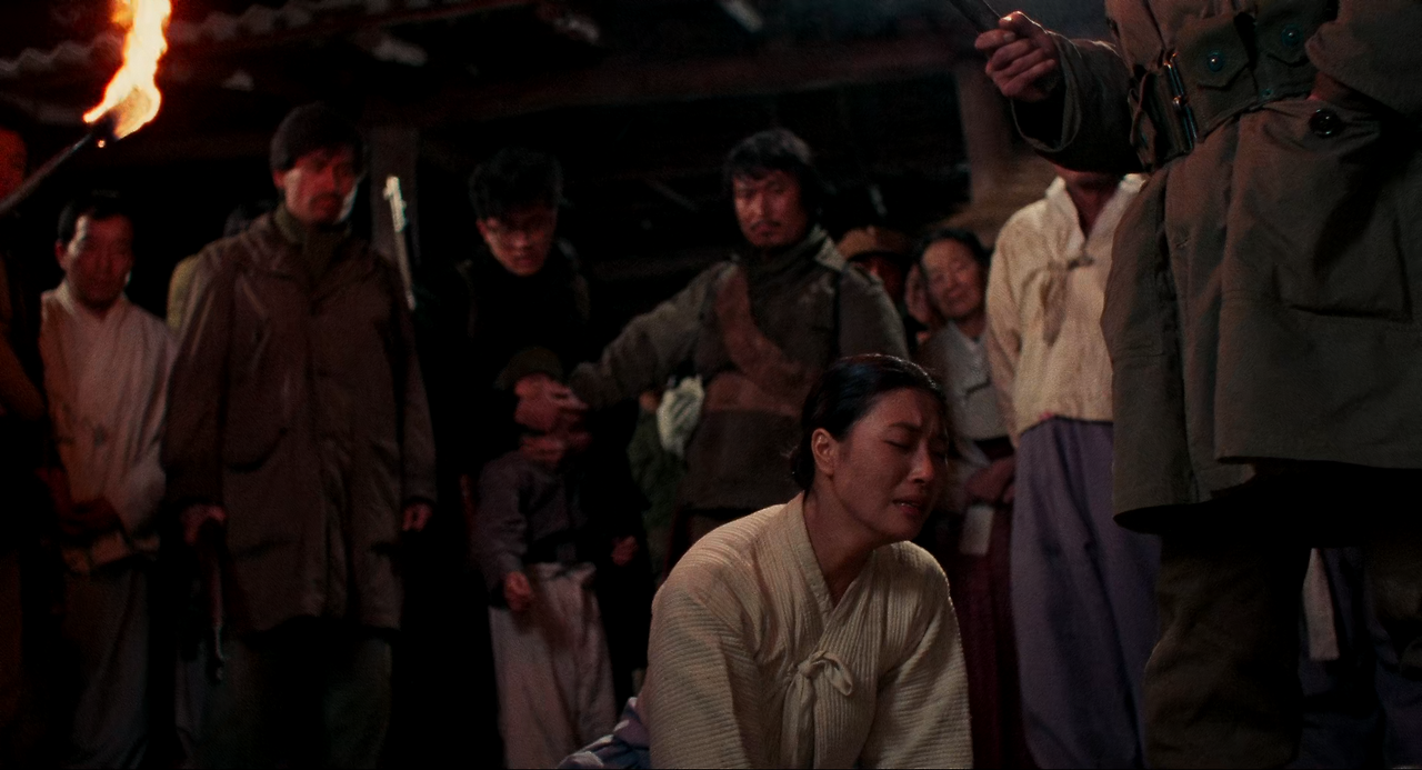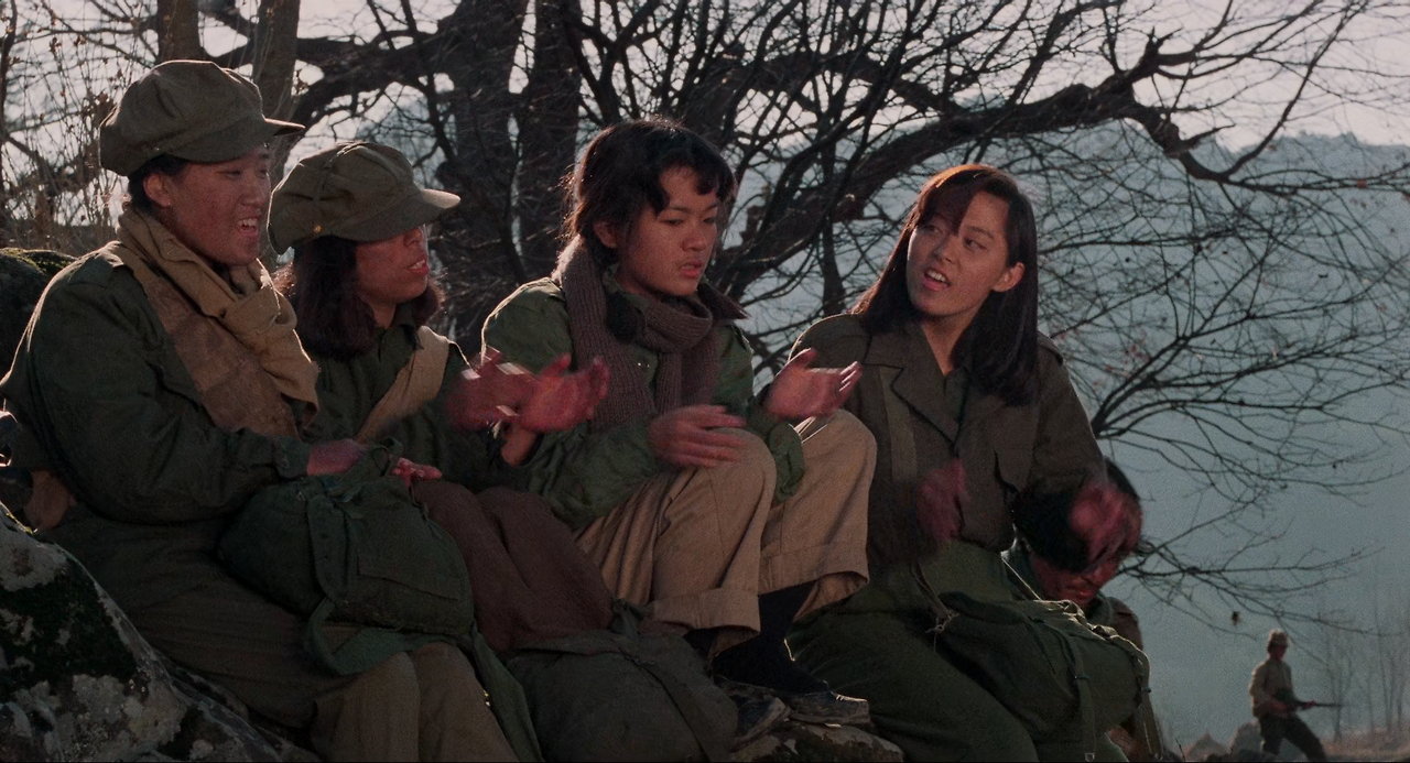 이 영화에서 몇 가지 인상적인 장면이 나온다. 빨치산과 토벌군 양군이 대치하는 가운데 뛰어든 강아지와 소년, 그들은 서로 자기 쪽으로 오라는 양군의 외침에도 불구하고 저 멀리 중간에서 부르는 엄마의 품으로 달려간다. 마을에서 이태와 민자가 토벌군의 포위에 빠져 위기에 처했을 때 동네 아주머니가 그들을 숨겨주고, 토벌군을 따돌린다. 그리고 마을의 과부를 겁탈한 황대용에 대해 빨치산 지휘관은 군법 위반으로 그를 처단하며, 황대용은 그것을 담담히 받아들인다.