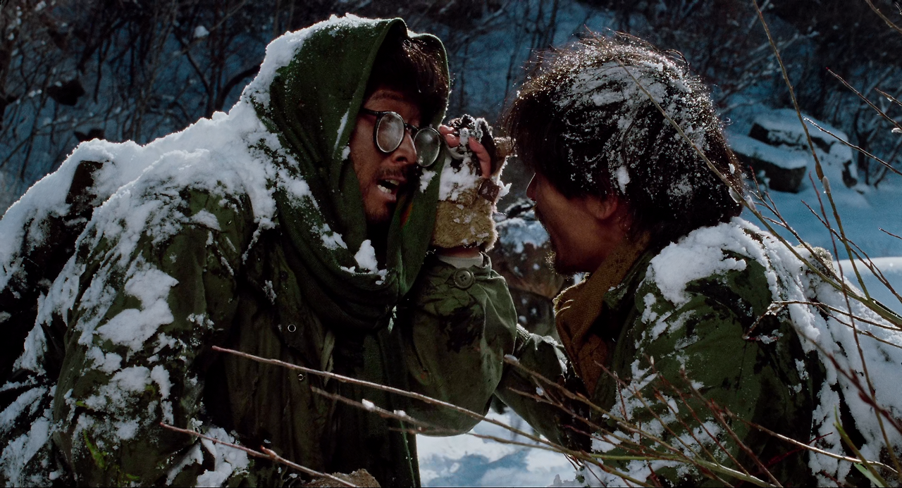 소년은 엄마 곁으로 돌아갔지만, 총격은 다시 시작되지 않는다. 그러던 중 이태의 소대에서 누군가 “두만강 푸른 물에...”라며 노래를 부르기 시작하고, 이 노래는 곧 떼창이 된다. 그러자 토벌군 측에서도 지지 않겠다는 듯 더 큰 소리로 “흘러간 그 옛날에 내 님을 싣고....”라며 떼창을 시작한다. 대치한 두 부대는 마치 노래로 승부를 결정지으려는 듯 소리 높여 노래를 부른다. 그런데 두 부대는 사실 한편으로는 노래를 부르며, 다른 한편으로는 노래 소리를 통해 적 부대의 규모를 추측하고 있다. 이쪽 부대를 과시하려는 듯 분산하여 노래를 부르는 이태의 작전이 성공하여 토벌군은 후퇴한다.