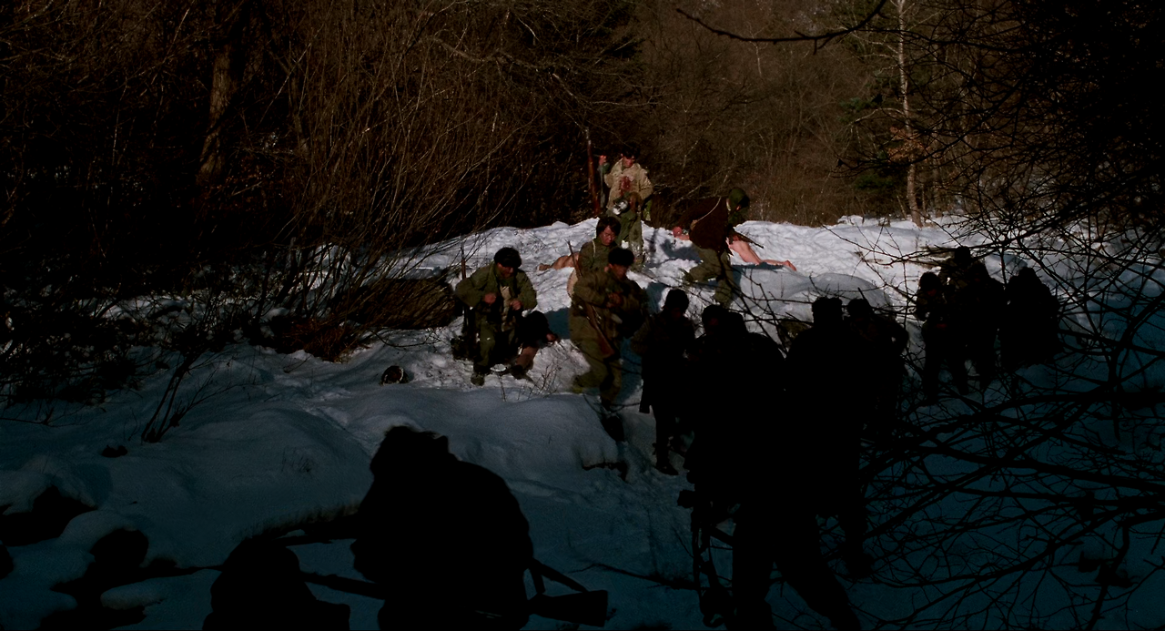 전투가 끝난 그날 밤, 연희전문 출신의 인텔리 청년 김영은 이태에게 그의 애인에 대해 이야기해준다. 이태는 그의 사연을 안타까운 마음으로 듣지만, 막상 자신이 해줄 수 있는 말은 없다. 몇몇 소대원이 몰래 술 파티를 벌인 끝에 한 병사가 술에 취해 주정을 부린다. 그러다가 그는 어둠 속에서 날아온 총알을 맞고 사망한다. 중간 간부인 황대용(트위스트김 분)은 화가 나 마을에 밀고자가 있다면서 수색하다가 경찰관을 남편으로 두었던 과부를 밀고자로 추정한다. 그는 과부를 처단하려다가 그녀를 겁탈한다. 과부는 다음 날 혀를 물고 자살하였다.